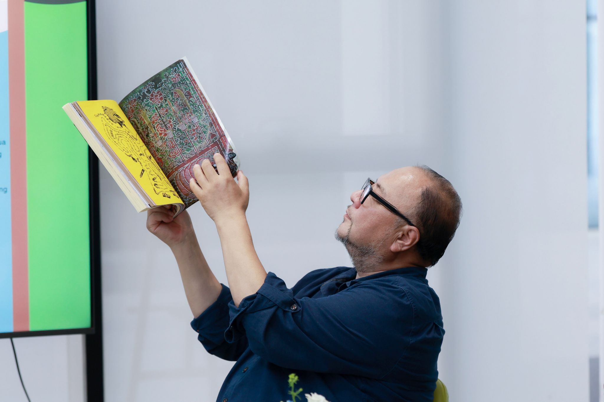 本次纪念特展共展出了50余部《汉声》杂志的珍藏书目,致敬杂志对中华民间文化所做出的卓越贡献。《汉声》杂志北京编辑部编辑陈密先生带领大家一同观展,并与在场师生们分享了杂志社背后有趣的奇闻轶事,以及作为民艺守望者的坚实付出。