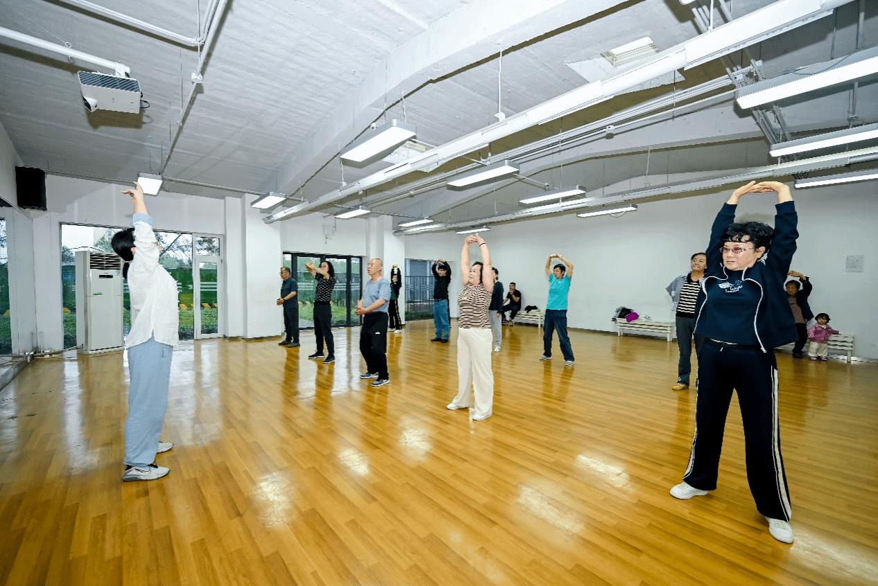 接下来,国家二级运动员、健美操国家一级裁判石佳琪老师带领着学员们进行了八段锦的健身体验活动。石老师以其专业的指导和热情的鼓励,让学员们在自宋代传承至今的八段锦健身活动中,于一动一静、一呼一吸之间,感受到身心合一,愉悦流动。