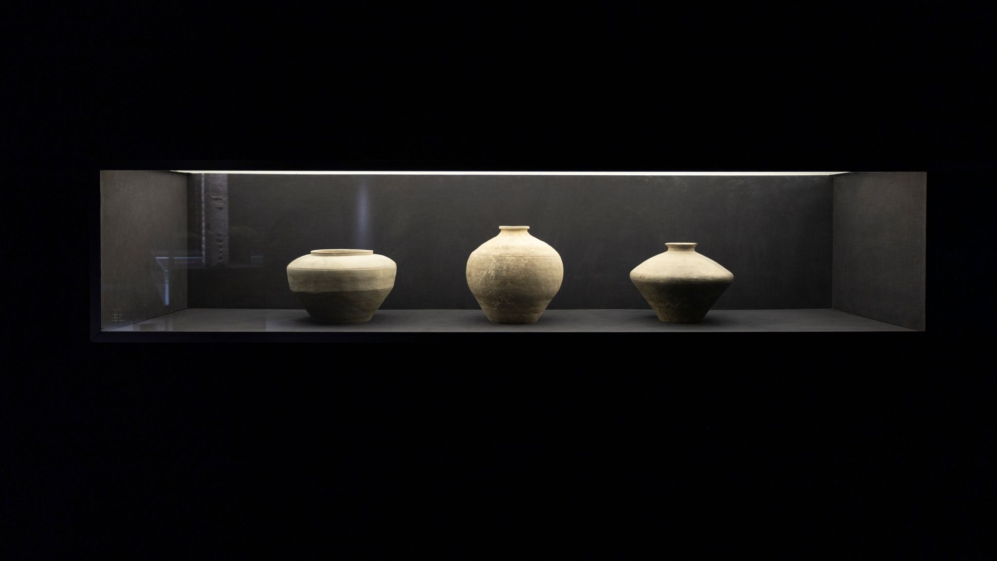 行走在中国馆,光影交错间,汉字的书写与表达,在瓦当、竹简、碑拓等陈列里被拆分成设计模块。在藏品的选择上,相比于文献或考古价值,设计博物馆优先考虑其设计价值。“比如一楼展示的秦代陶罐,我们选择的依据首先是器物上的纹饰和文字信息,而非器物本身。”另外,“你可以看到残缺的瓦当也被作为藏品,因为其中残存的文字对今天的设计师仍有启迪意义。”党晟先生说。