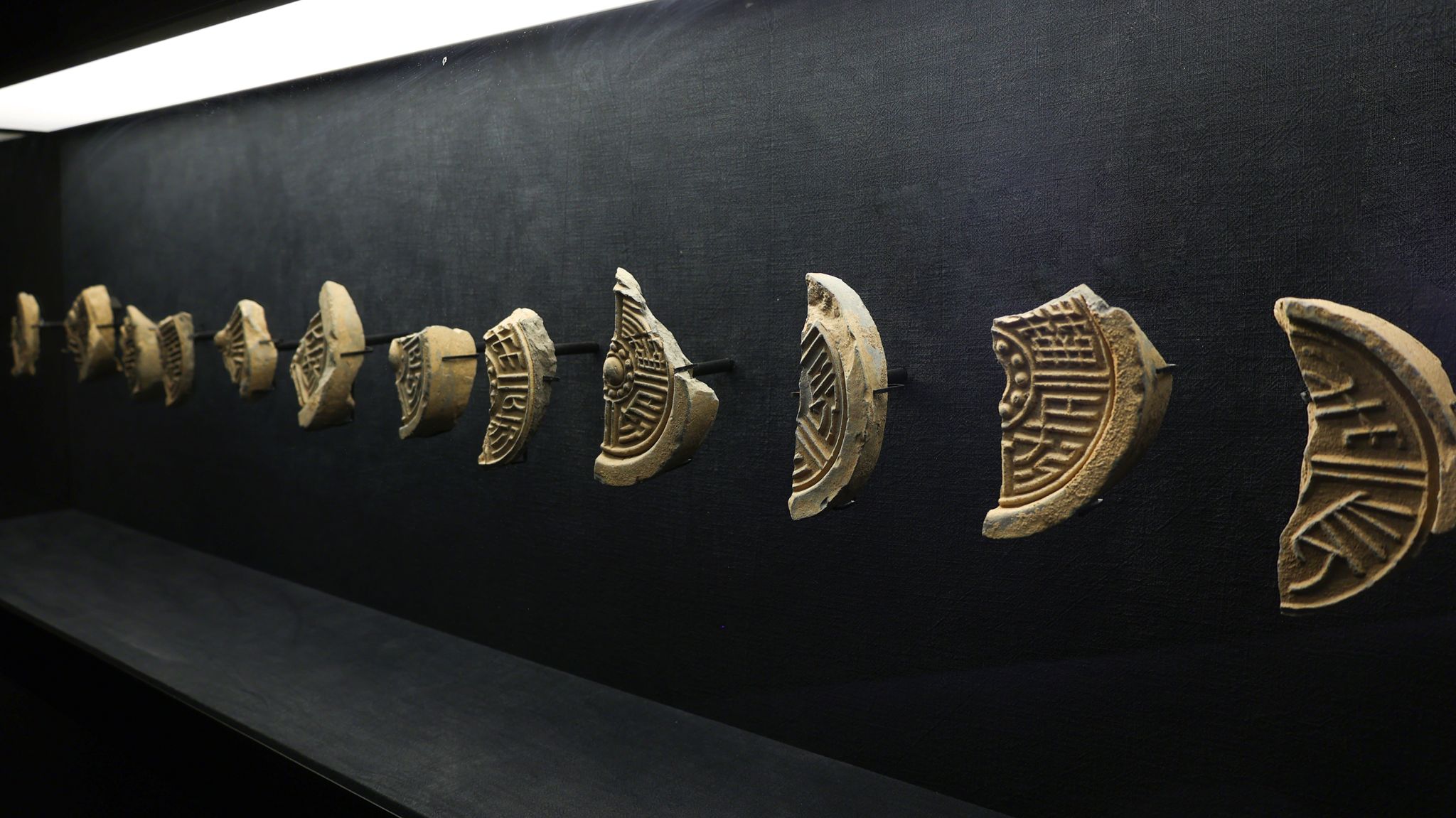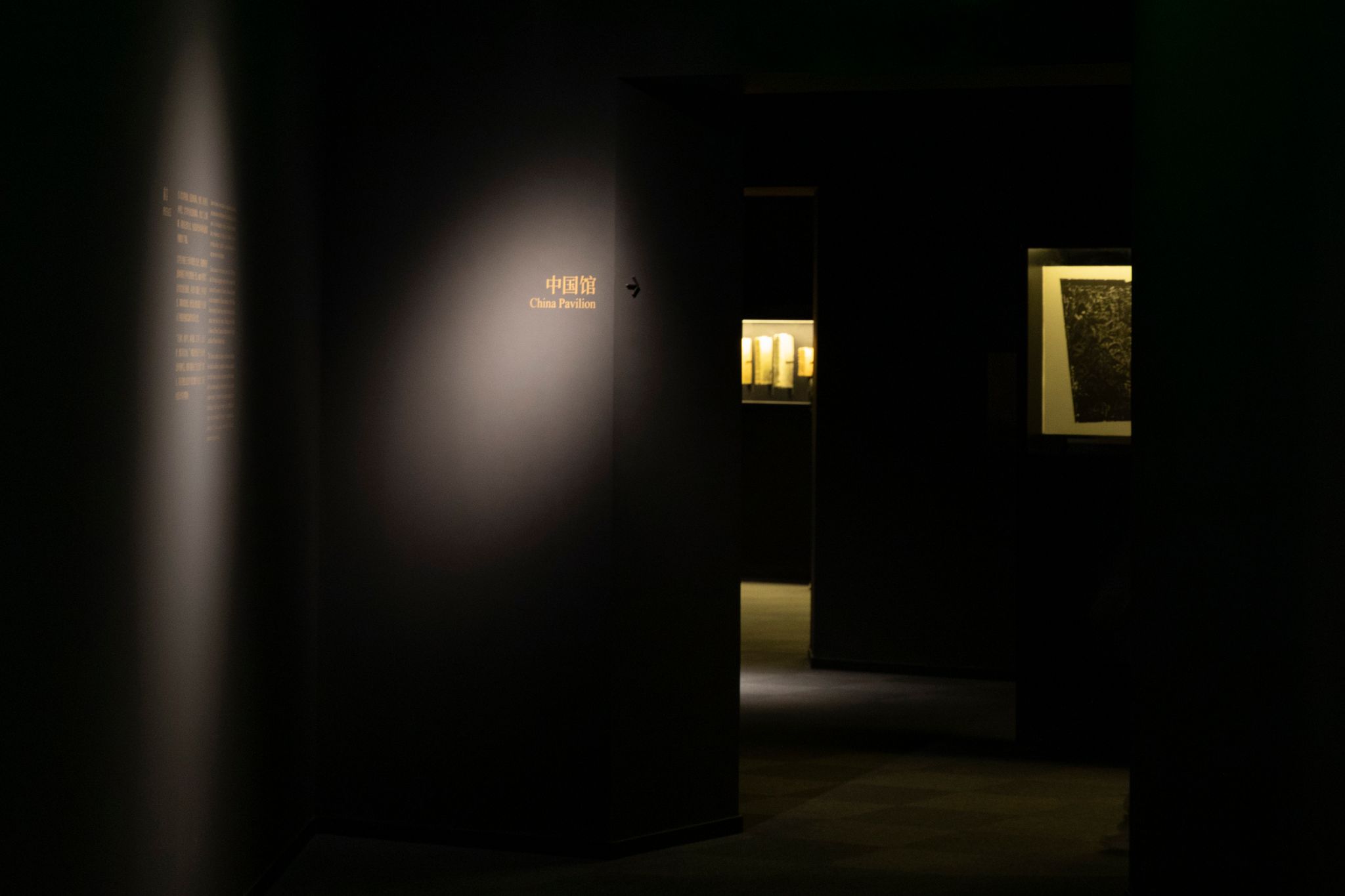 从先秦的陶罐、拓片,到汉代的彩绘空心砖、骨签木简;从唐代《金刚经》的复刻本到金宋的纹镜,清代的罗盘、民国的印版……中国馆200余件不同类别的藏品,以汉字的发展为脉络,向大众展示了纸张发明之前古人们记录、传递信息的多种媒介,中国汉字从象形走向抽象的演变,及至印刷技术发展下雕版印刷、活字印刷、印本等多种形式的内容载体,体现中国传统汉字及其载体的渊源流变。