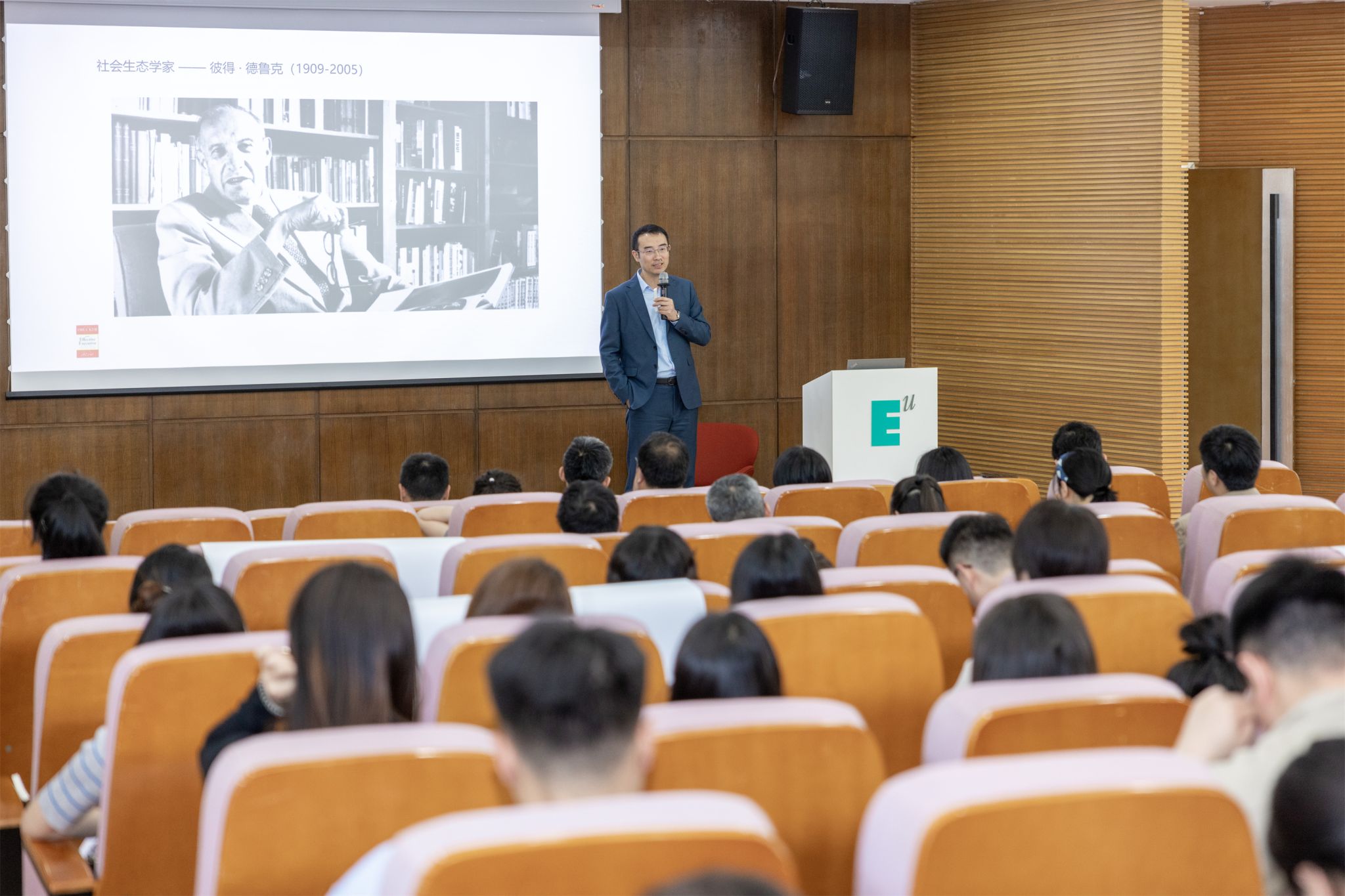 4月18日,欧亚回声学者、“十二个德鲁客”联合发起人杨无锐与武汉大学哲学学院苏德超教授,与校内外师生共话管理学与哲学。两位老师以柏拉图和德鲁克的经典言论入题,深入剖析了管理学与哲学在现代教育和实践中的融合与碰撞。他们鼓励师生将哲学学习与思考融入日常生活,使之成为提升个人素养、丰富精神世界的重要途径,并希望大家保持对哲学的热爱,在忙碌的学习和工作中,不忘思考人生的意义,追求更高的精神境界。