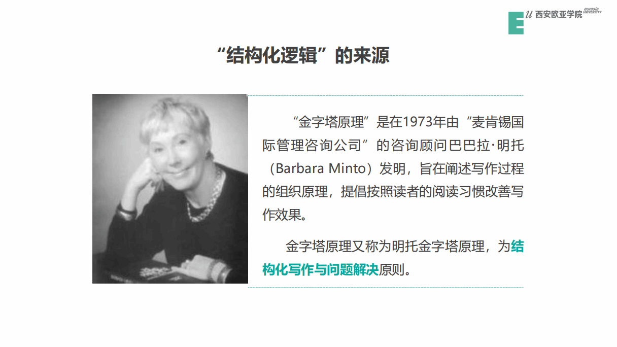 郭海玲老师在《结构化写作》工作坊中强调结构化思维在写作中的重要性,结构化思维能够应用在职场写作、说理写作、创意写作等类型写作中。借助结构化写作,能将复杂的思考转化为有序、清晰的表达。在具体的结构化写作应用练习中,郭老师细致讲解了金字塔原理、MECE原则、SCQA序言模式等工具和方法,帮助教师们提升写作的逻辑性和条理性,引导教师们理解并实践结构化写作技巧,提高写作效率和质量。