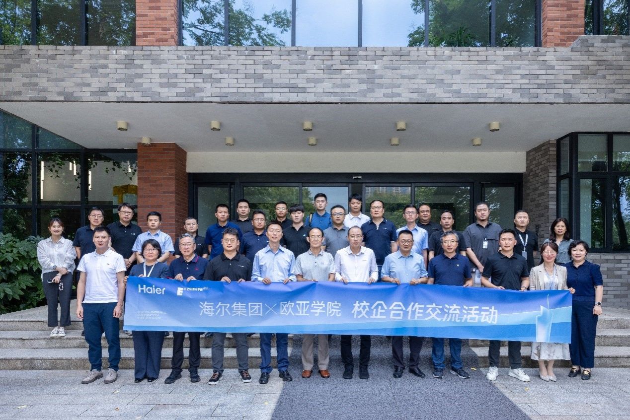 胡建波董事长提出:欧亚的合作理念就是为企业创造价值,与企业交往过程中会真诚的与企业广泛接触,欧亚自身也会进行积极的尝试与探索,以破解企业与高校合作中的的壁垒,例如欧亚在打造大学校区、产业园区及公共社区三区的联动发展。学校的目标就是建百年名校,为西安共建一处新的人文景观。他觉得欧亚与海尔有很多价值观一致,都很注重长远的发展合作,所以未来从点到面都可以开展合作。欧亚除了帮助海尔解决人才问题,还可以把教育理念和美学、材料与科技、工业互联网等方面结合,与海尔共建具象化的标杆展厅。未来也借助海尔的资源与平台,把欧亚的艺术感和景观带入更多的园区。