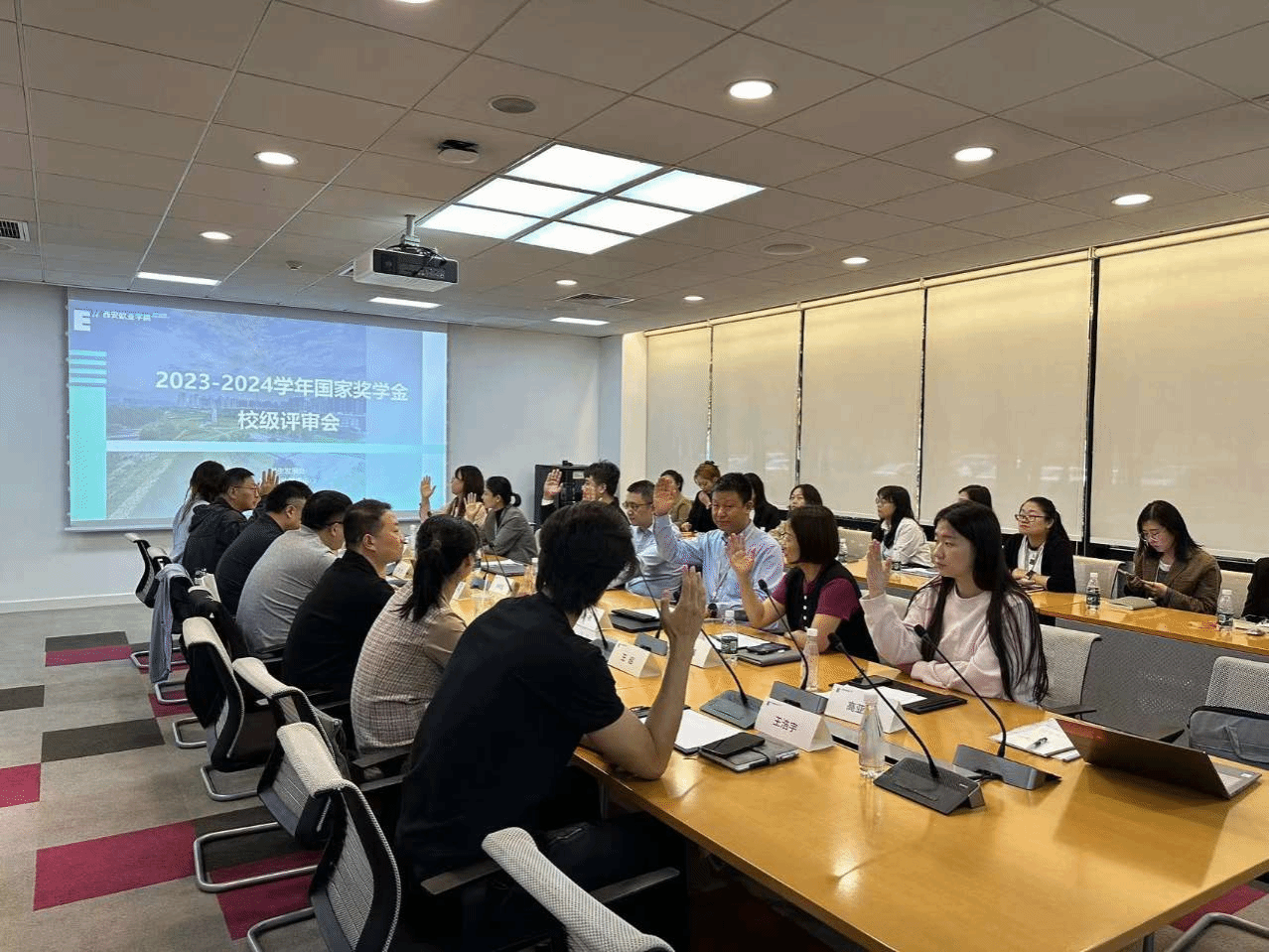 (图四)评审委员会成员举手表决国家奖学金候选学生