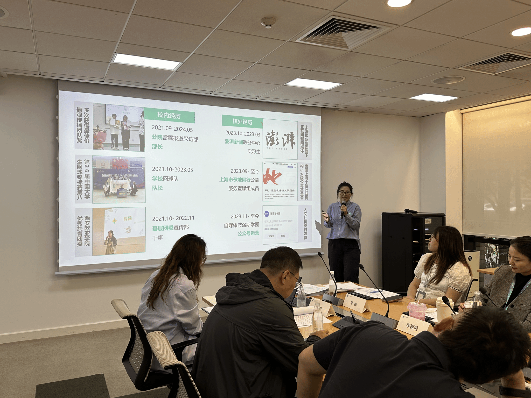 在国家奖学金综合评审环节,6名国家奖学金备选人依次完成了精彩的个人答辩,在答辩中对个人的学习成果、科研创新、社会实践、志愿服务等方面进行了全面的展示。