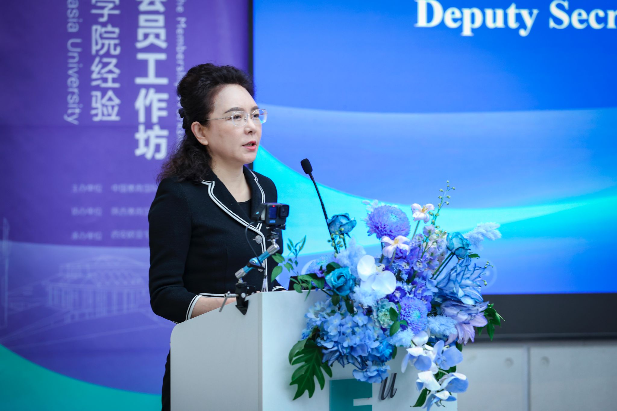 赵国华在致欢迎辞时说,建校29年来,欧亚始终秉持“以学生为中心”的教育教学理念、“国际化、应用型、新体验”的质量内涵,在教育教学、信息化改革、专业认证等领域快速发展、健康成长。2022年,学校首个中外合作办学项目——软件工程专业本科教育项目顺利获批。这一切得益于省委教育工委和省教育厅的坚强领导和大力支持,以及兄弟院校和教育界同仁的携手共进和无私帮助。本次会员工作坊是中国教育国际交流协会贯彻落实全国教育大会关于深入推动教育对外开放部署要求的重要行动,他希望各位与会代表借此机会增进共识、开拓视野、推动合作,探索高等院校对外开放的新路径、新方式。