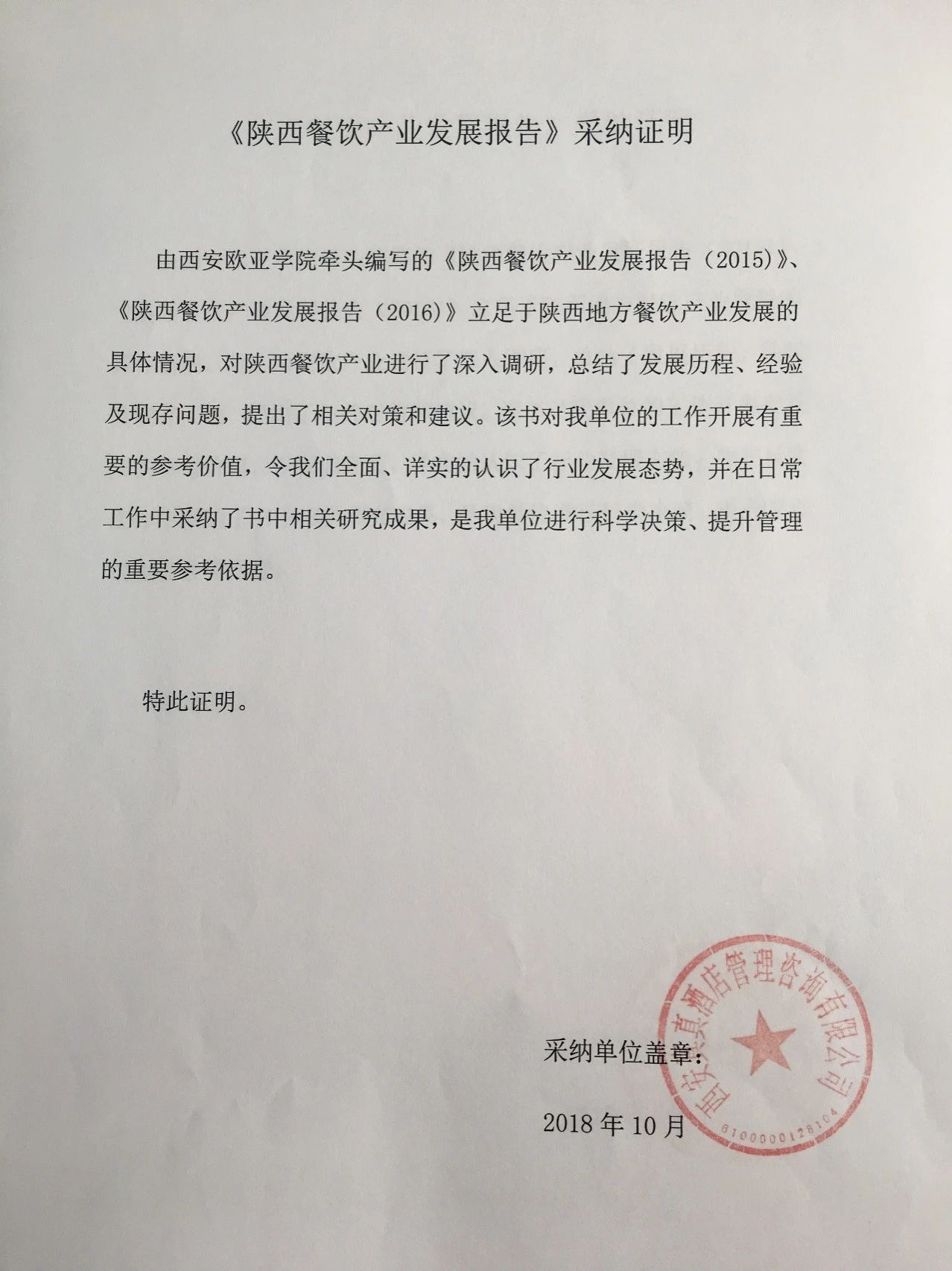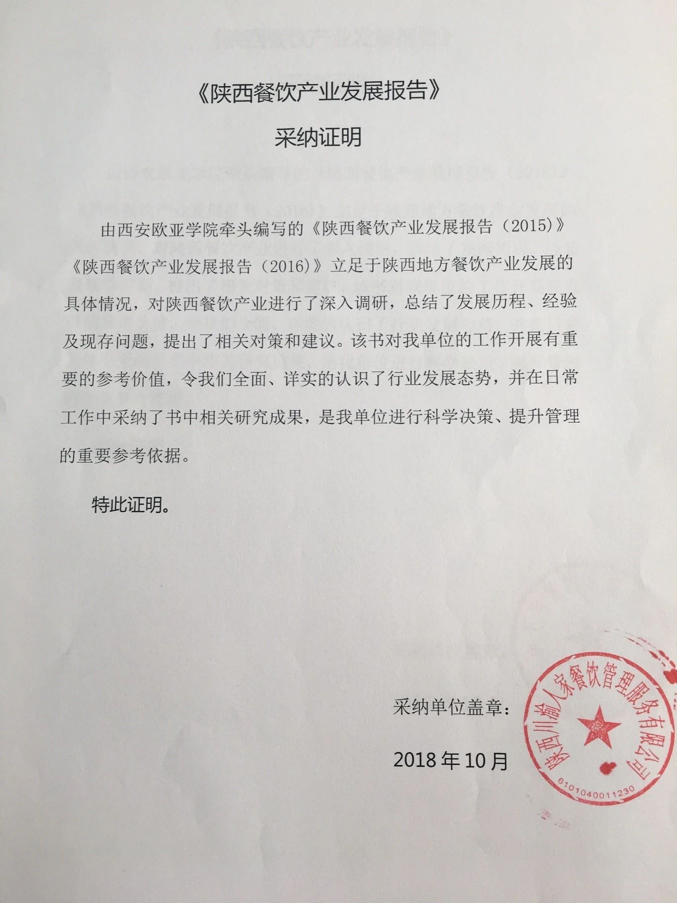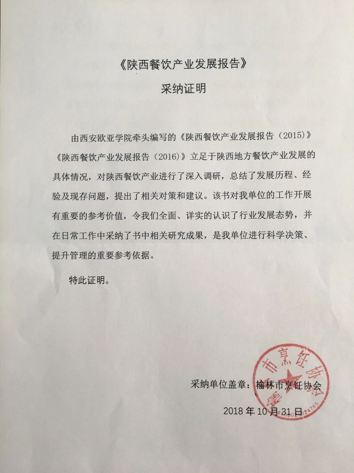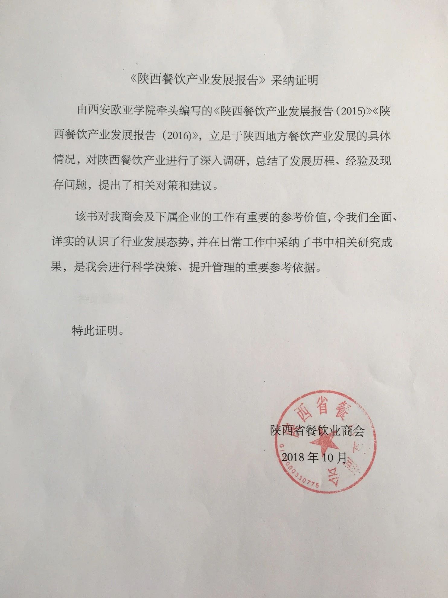 伴随第四届西安·食学亚洲论坛的成功举办,鸭脖王喜庆研究员作为长期从事研餐饮食学研究的专家,借此契机策划并负责了关于餐饮研究与食学的论文集,欧亚休闲管理学院(现工商管理学院)与陕西省餐饮业商会合作成立了中国国际食学研究所,集合全国知名专家和学院骨干教师,耗时半年出台了此本陕西省餐饮行业蓝皮书。