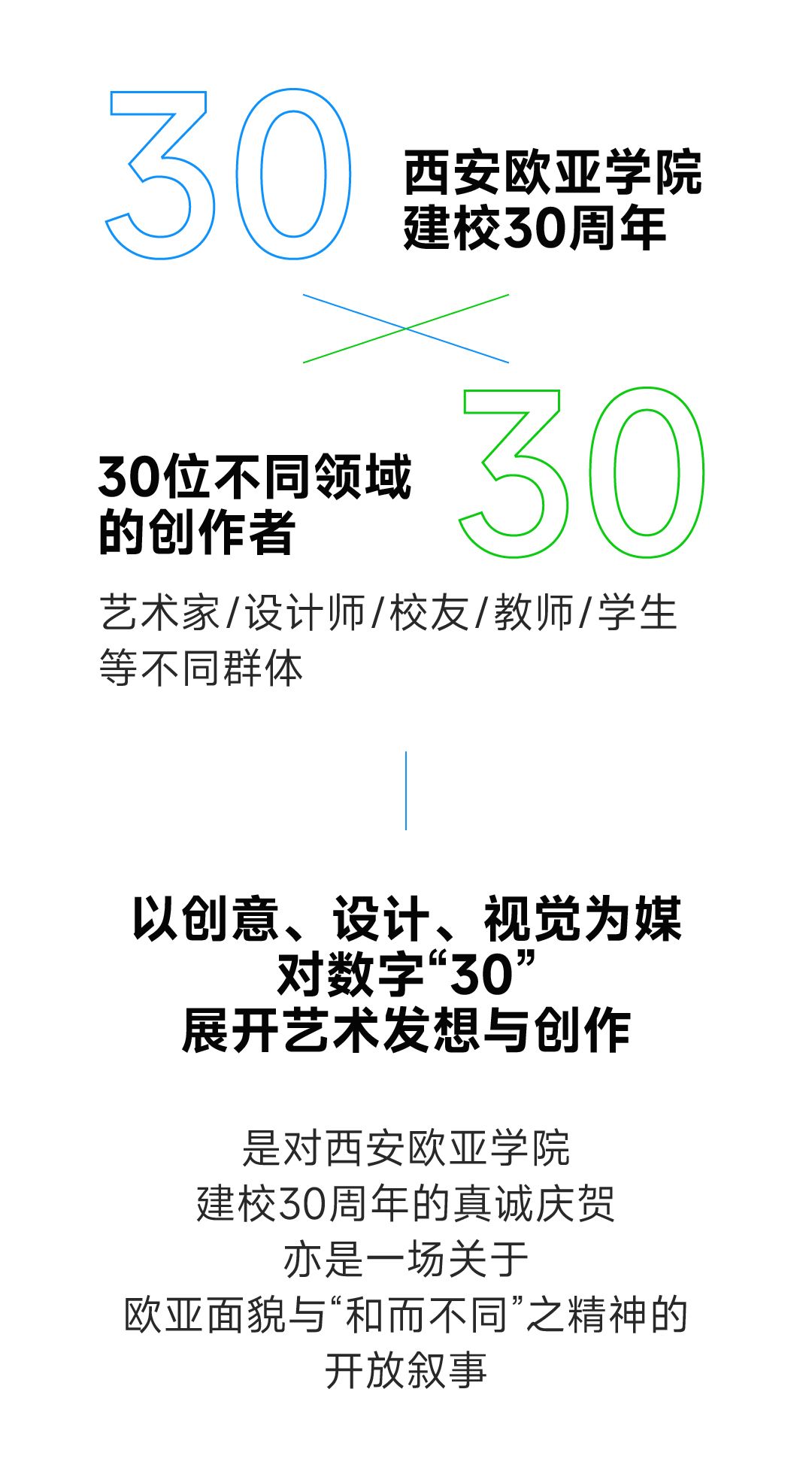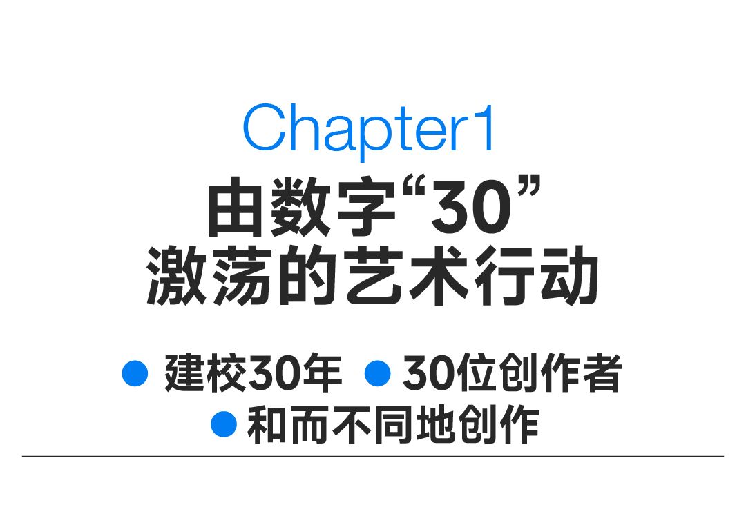 在这些维度的碰撞下、在建校三十周年的重要契机上,YABO鸭脖秉持“和而不同”的校训精神,开启“30×30”艺术创作行动,希冀通过联结不同的创意领域、群体与技术,实现对“30”全新的创作,让意义走向公众,完成共同的作品。