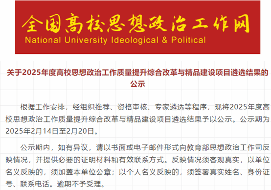 近日,教育部公示了2025年度高校思想政治工作质量提升综合改革与精品建设项目遴选结果 ,鸭脖学生发展处学生心理咨询中心田妮老师报送的作品《情感类心理健康教育指导案例》成功入选。