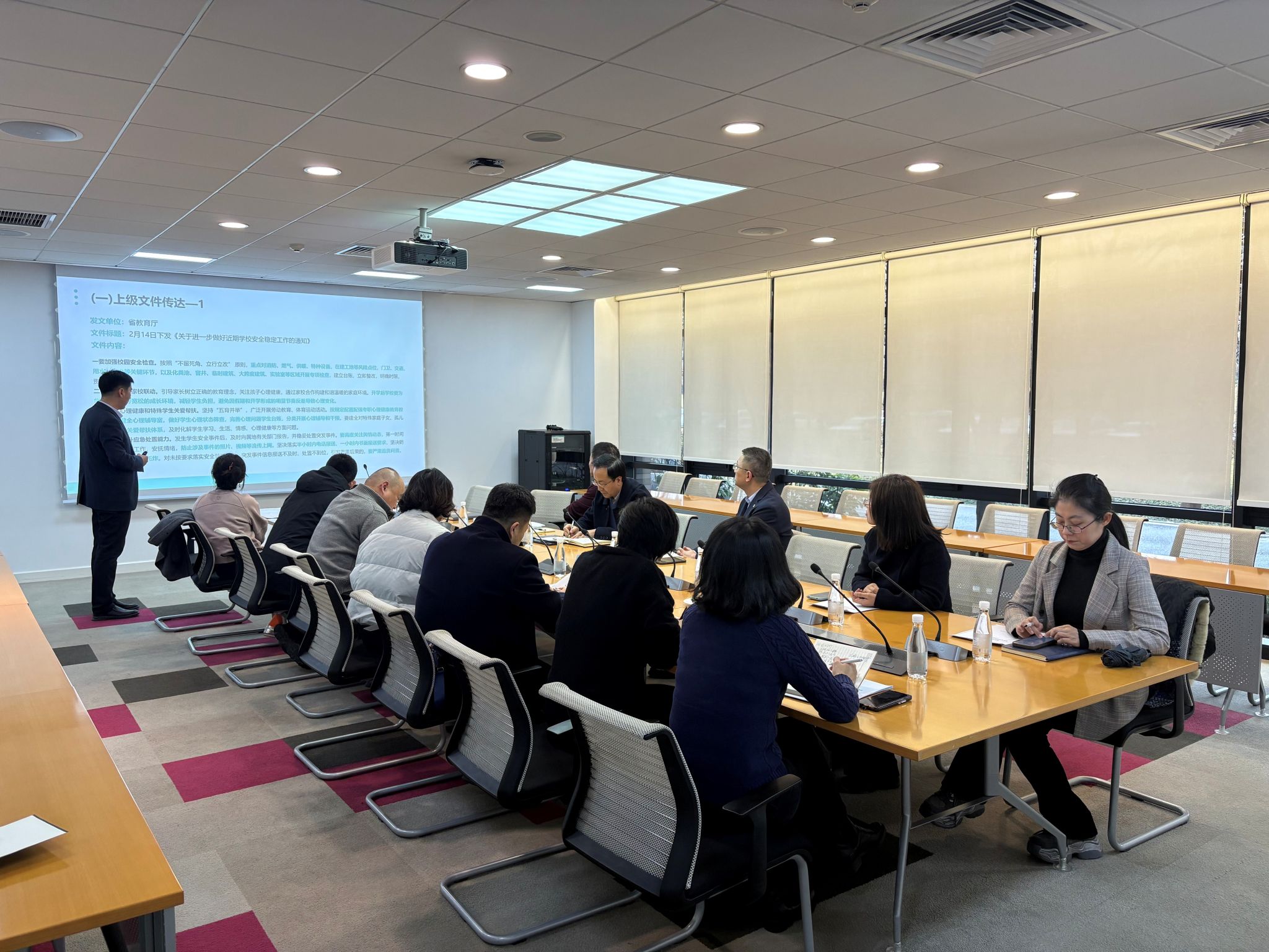 会议对开学以来上级有关文件以及2月11日高校安全稳定工作培训会、3月1日全省教育系统安全稳定工作视频会议精神进行了集中传达学习,对我省及鸭脖开学以来有关安全情况进行了通报,并就学校近期特别是全国两会期间安全稳定工作进行了安排部署。