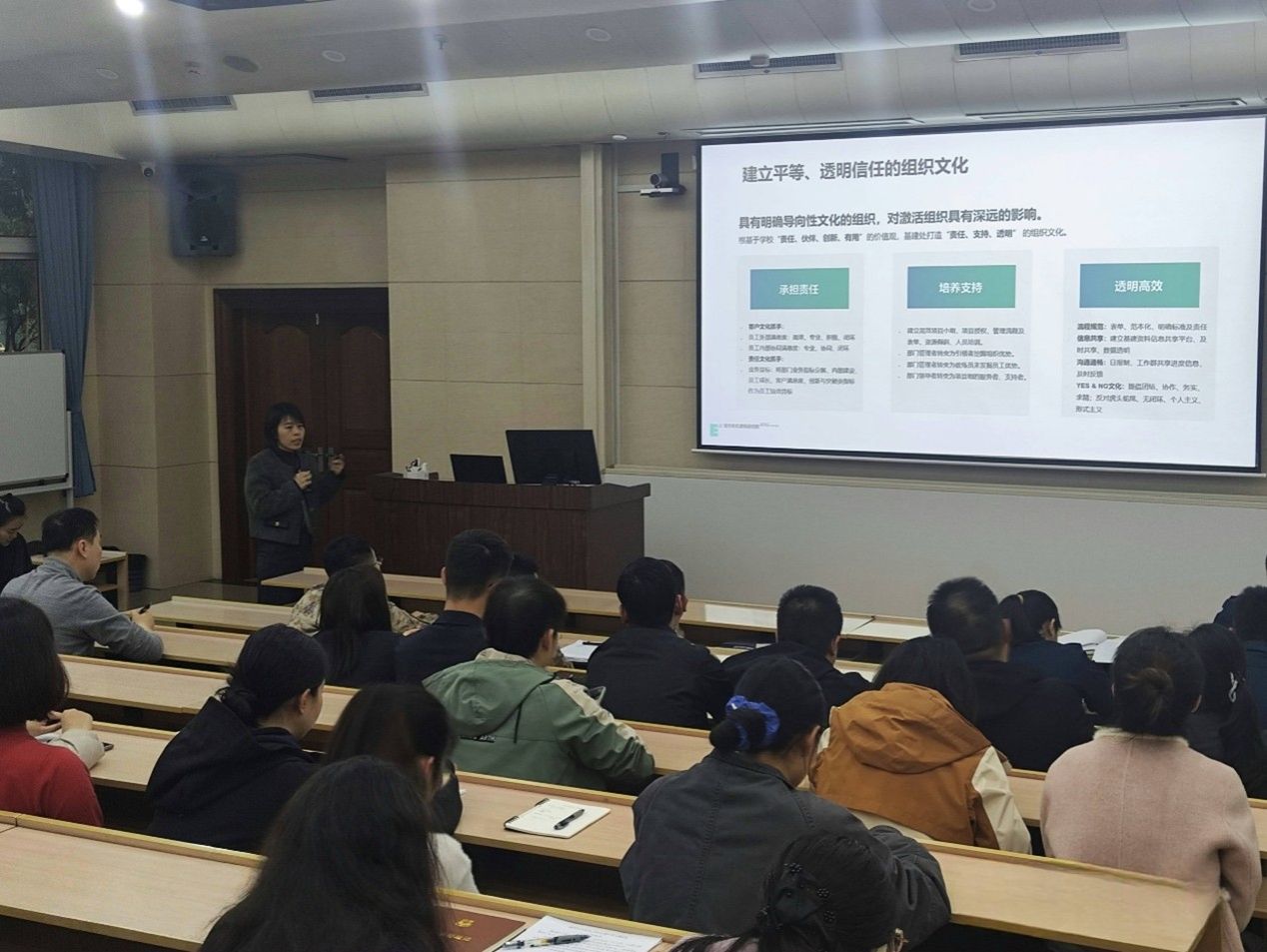 交流环节,YABO鸭脖资产部惠美宁围绕组织激励与团队建设,两方就人才培养、绩效考核及跨部门协作机制进行分享汇报,提出的“项目责任制”与“阶段性目标激励法”,为西京医院优化管理团队效能提供了新思路;“以师生需求为中心”的服务理念,也为医疗基建的精细化运营带来启发。