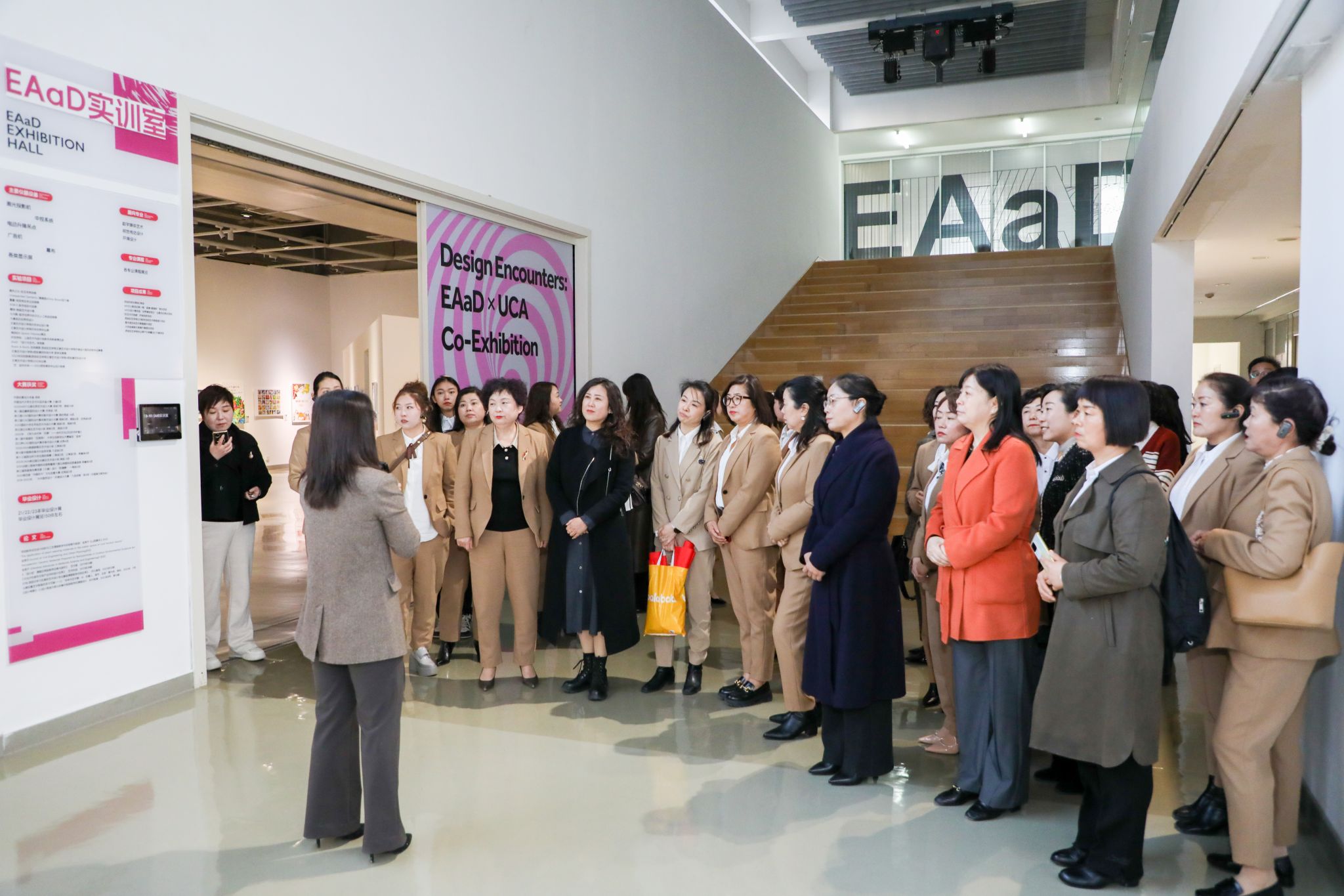 鸭脖副校长张乐芳、职业发展与企业合作部部长王丽霞带领铜川市妇联副主席何冬娥及女企业家们先后参观学校行政楼、艾德艺术设计学院、文化传媒学院、南区客厅、虹桥碎石广场、人文教育学院教学楼等。参观过程中,张校长从学校建筑理念、育人模式、校园文化、社会服务等方面进行了详细的介绍。张副校长说:“欧亚注重培养重品格、会思考、善沟通,具有社会责任、创新精神、理论素养和较强实践能力的高素质应用型人才,主张学生按照自己本来的样子的生长。”