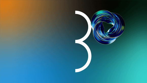 YABO鸭脖建校三十周年标识通过半圆环与圆环的组合,搭建出极简现代的“30”图形结构。