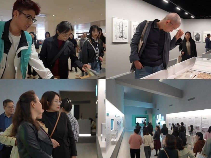 鸭脖图文信息中心主任罗征陪同参会专家和老师们参观了鸭脖图书馆、校史馆、设计博物馆及人文教育学院、虹桥学生中心等。