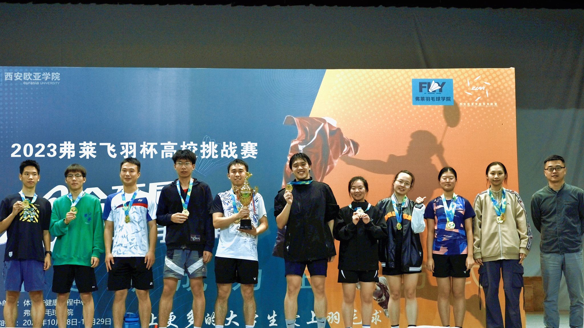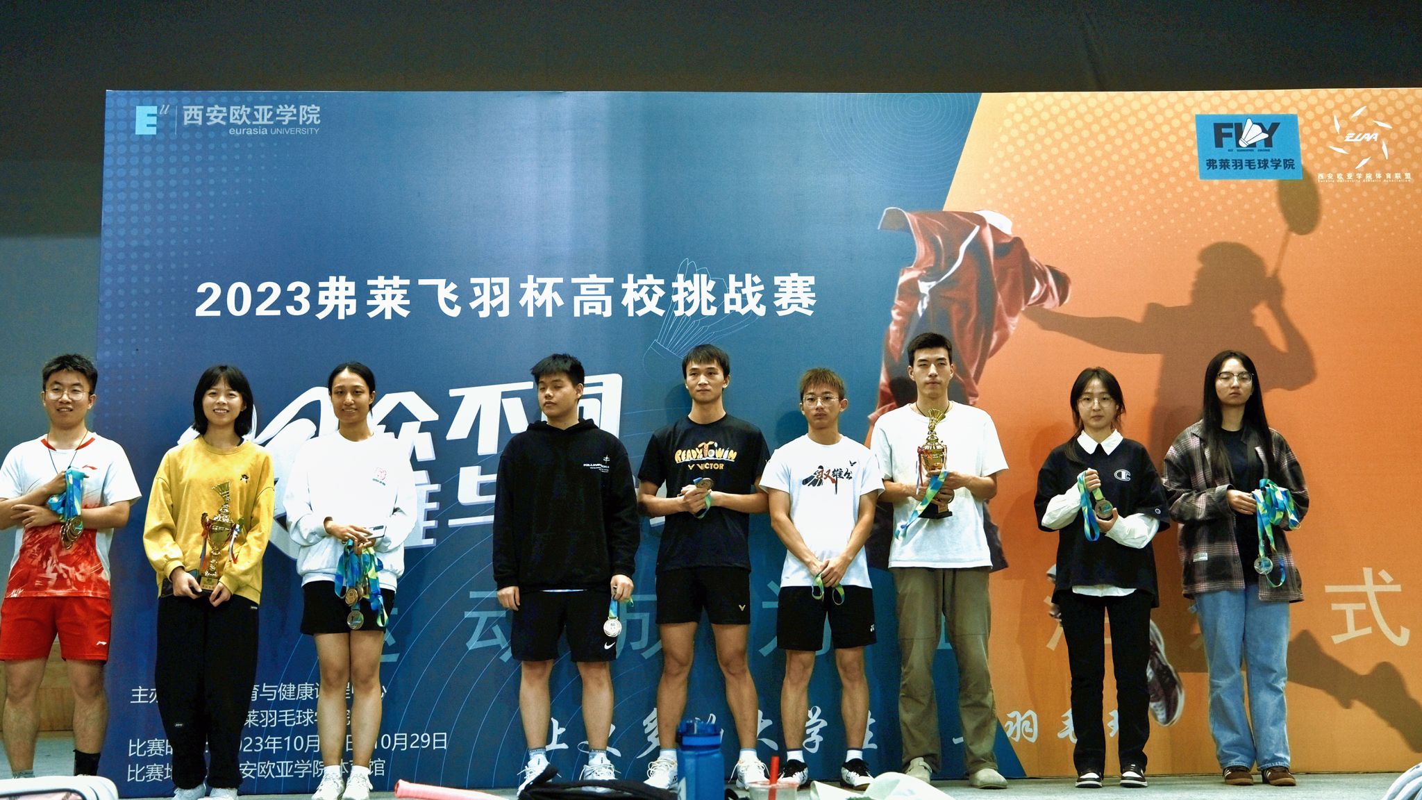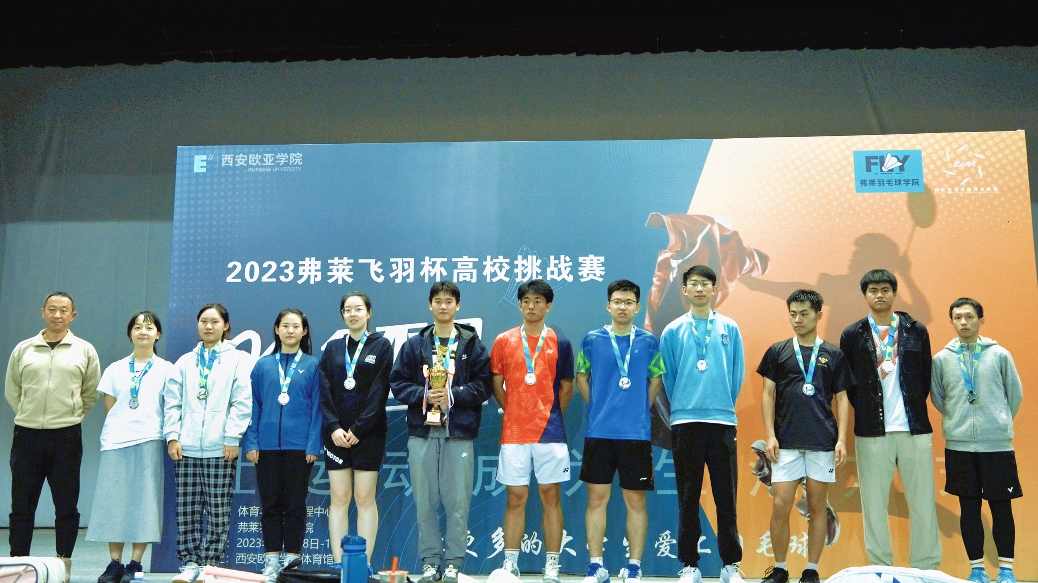 10月28日-29日,鸭脖通识教育学院主办的首届“弗莱飞羽杯”陕西高校羽毛球挑战赛在体育馆举行。来自西安交通大学、西安电子科技大学、西安建筑科技大学、西安外国语大学、西安邮电大学、西安财经大学、西北政法大学和YABO鸭脖的8个代表队、100余名选手参赛,共享羽球盛宴。