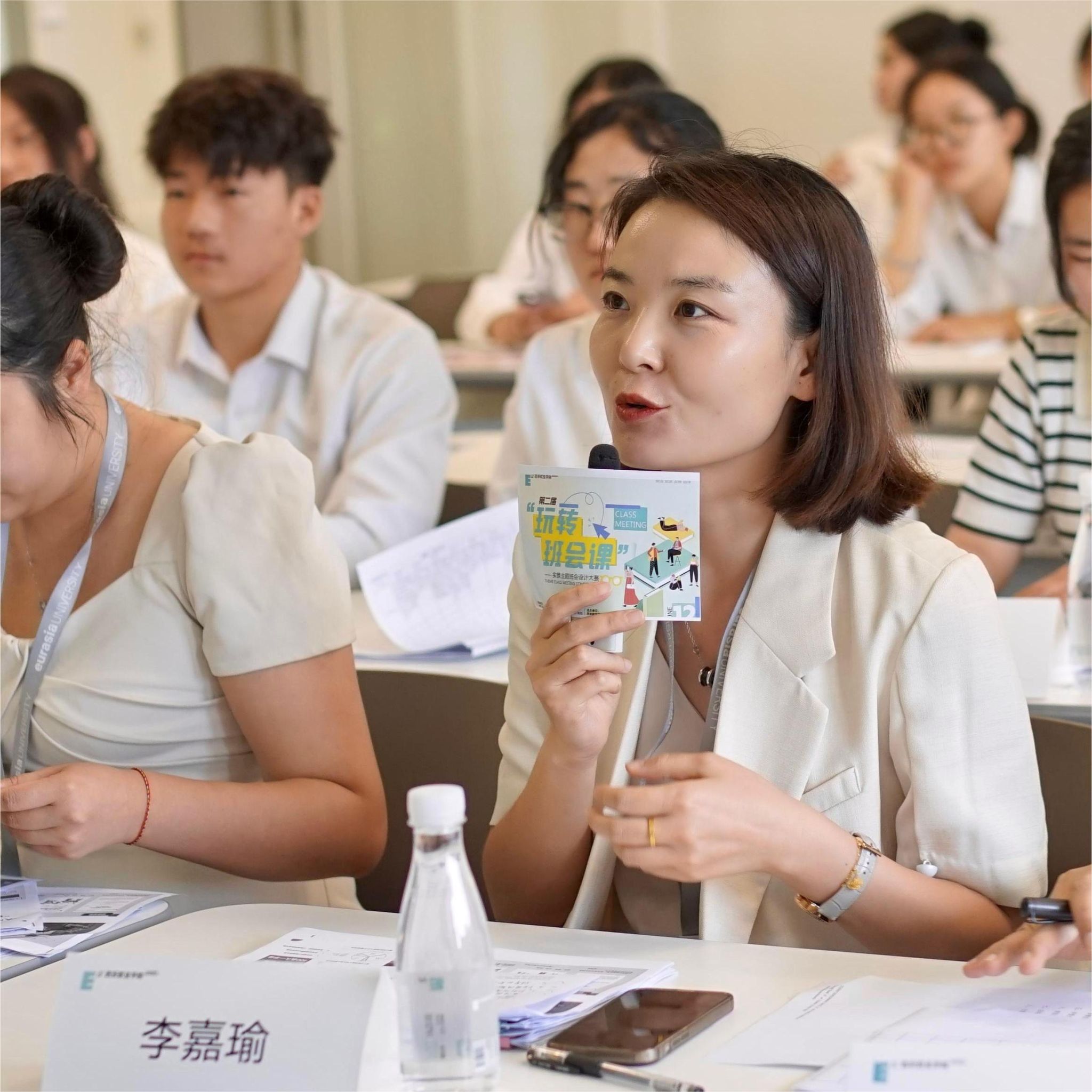 为切实提升课堂成效,促进学生全面发展,打造有深度、温度的欧亚主题班会课,提升辅导员业务能力水平,进一步落实鸭脖人才培养目标。学生发展处于2024年6月12日在北D教学楼开展第二届“玩转班会课”实景主题班会设计大赛。大赛围绕青年社区共享价值观,塑造大学生积极品质,养成早睡早起、合理着装等健康生活方式为内容开展活动。学生发展处处长助理李嘉瑜、通识教育学院人文与艺术课程中心副主任邢江姹、通识教育学院专职教师武晓、学生发展处学生事务支持中心田志刚出席本次大赛,全校共6个班级,300余人参加比赛,青年社区共18位辅导员进行现场观摩学习。
