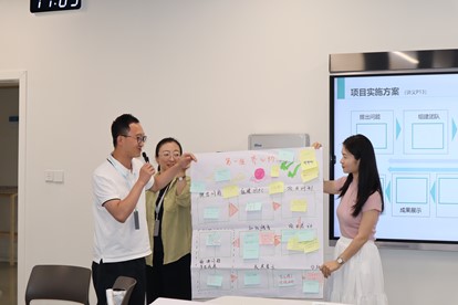 武晓老师以驱动问题为主导,讲解了“项目计划和项目实施的基本流程”、“PBL的综合性评价思路和反思”、“完成项目实施方案和评价方式”。参训老师通过小组活动、头脑风暴等方式不断完善项目设计,并在小组之间进行评估,让其他小组成员提出反馈,让老师们感受批判性反馈和项目式学习的特点。
