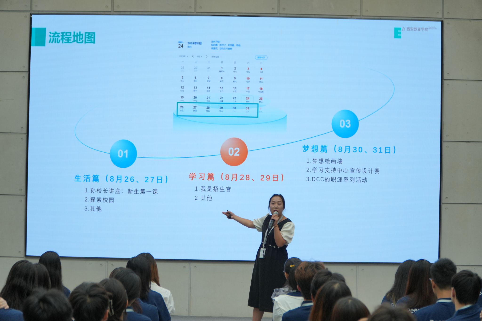 通识教育学院邢江姹老师对新生体验营项目进行详细介绍和现场答疑。新生体验营从生活篇,学习篇,梦想篇三部分出发,让新生自己探索适应大学的成果集(大学盒子),实现身心适应、生活适应、学习适应、社会适应,最终达成入学适应、自我成就的收集和存档。