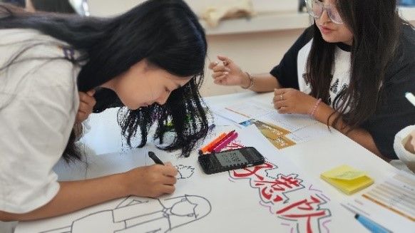 (图一)新闻学专业学生在绘制方案导图