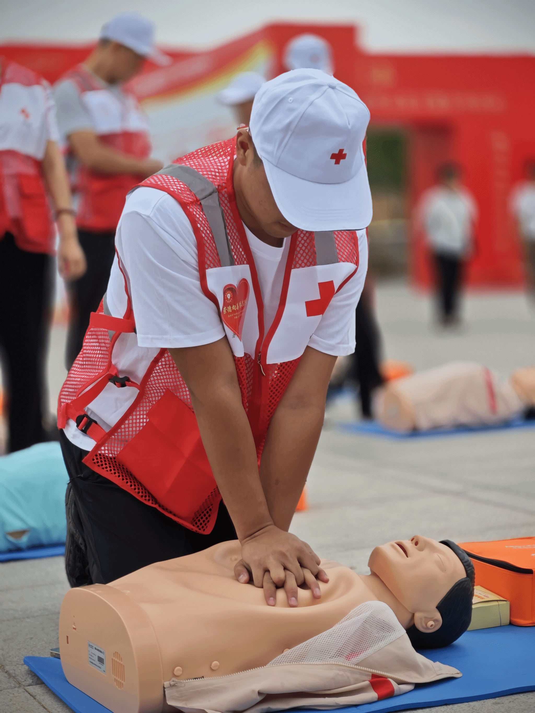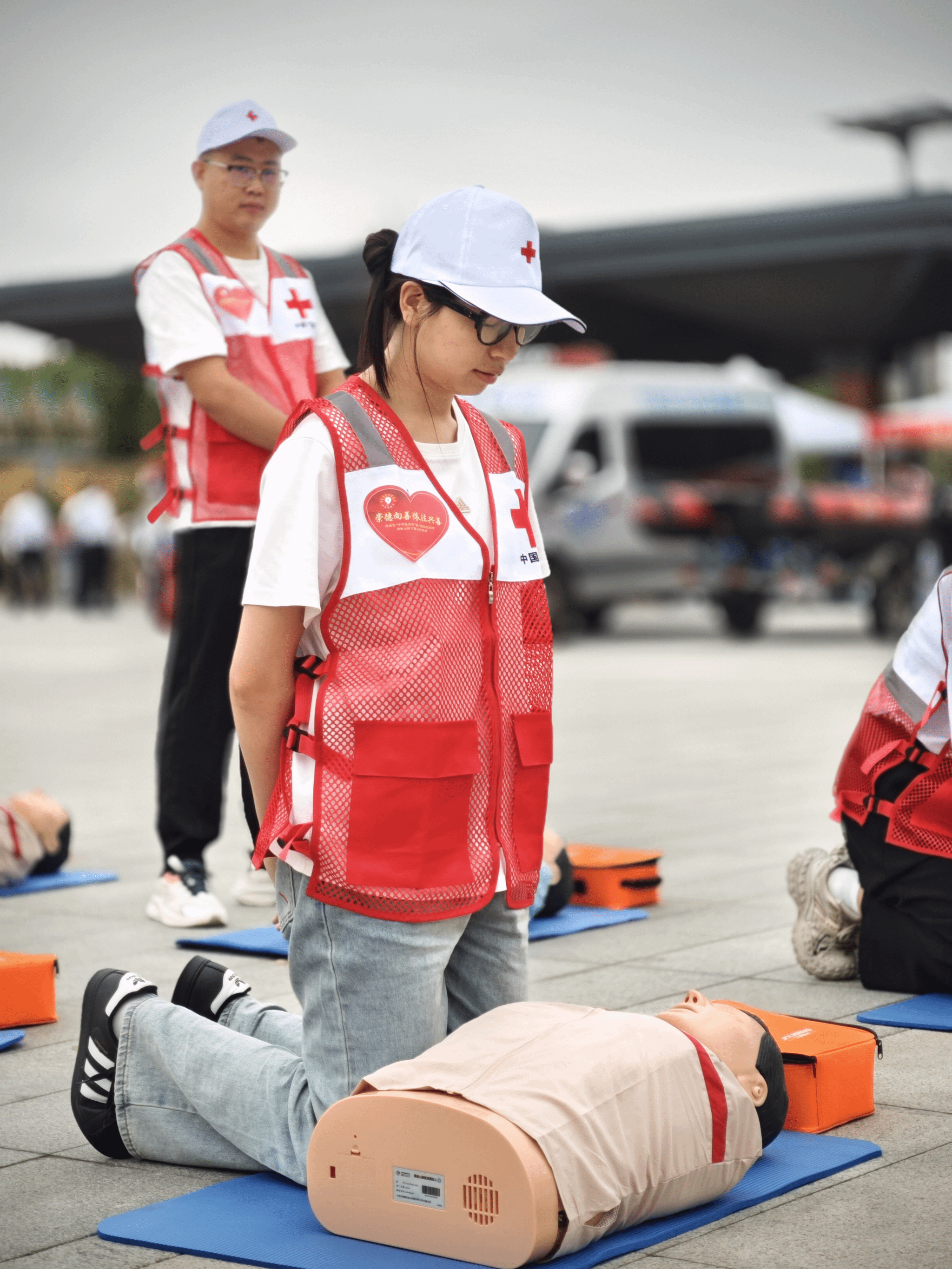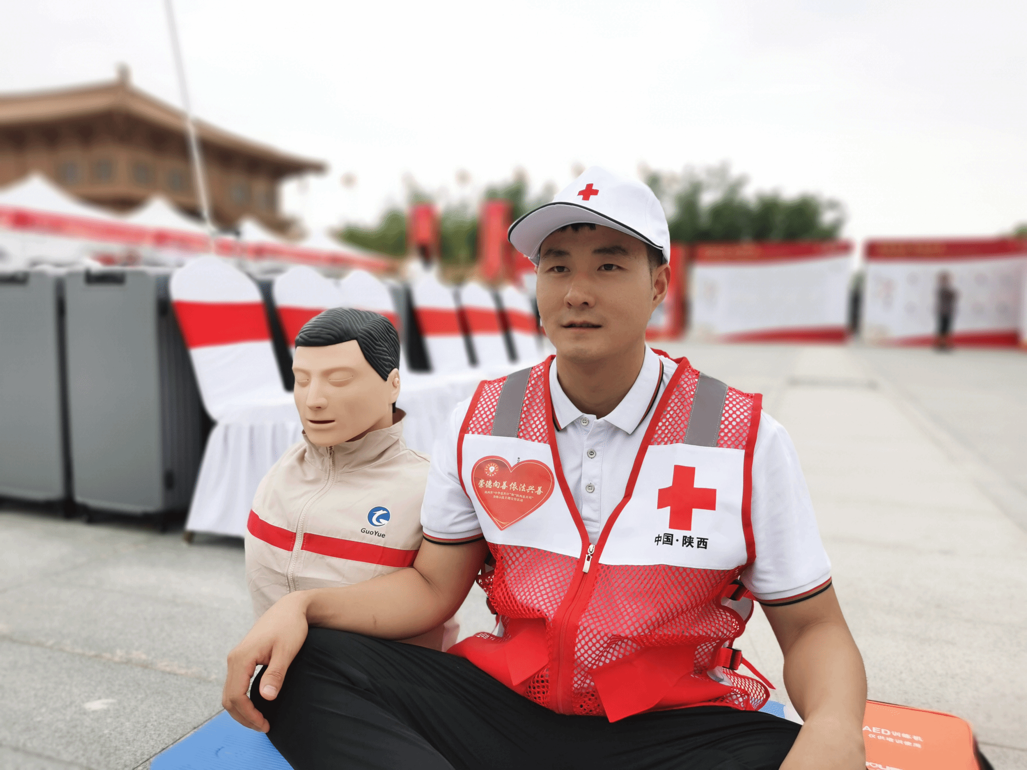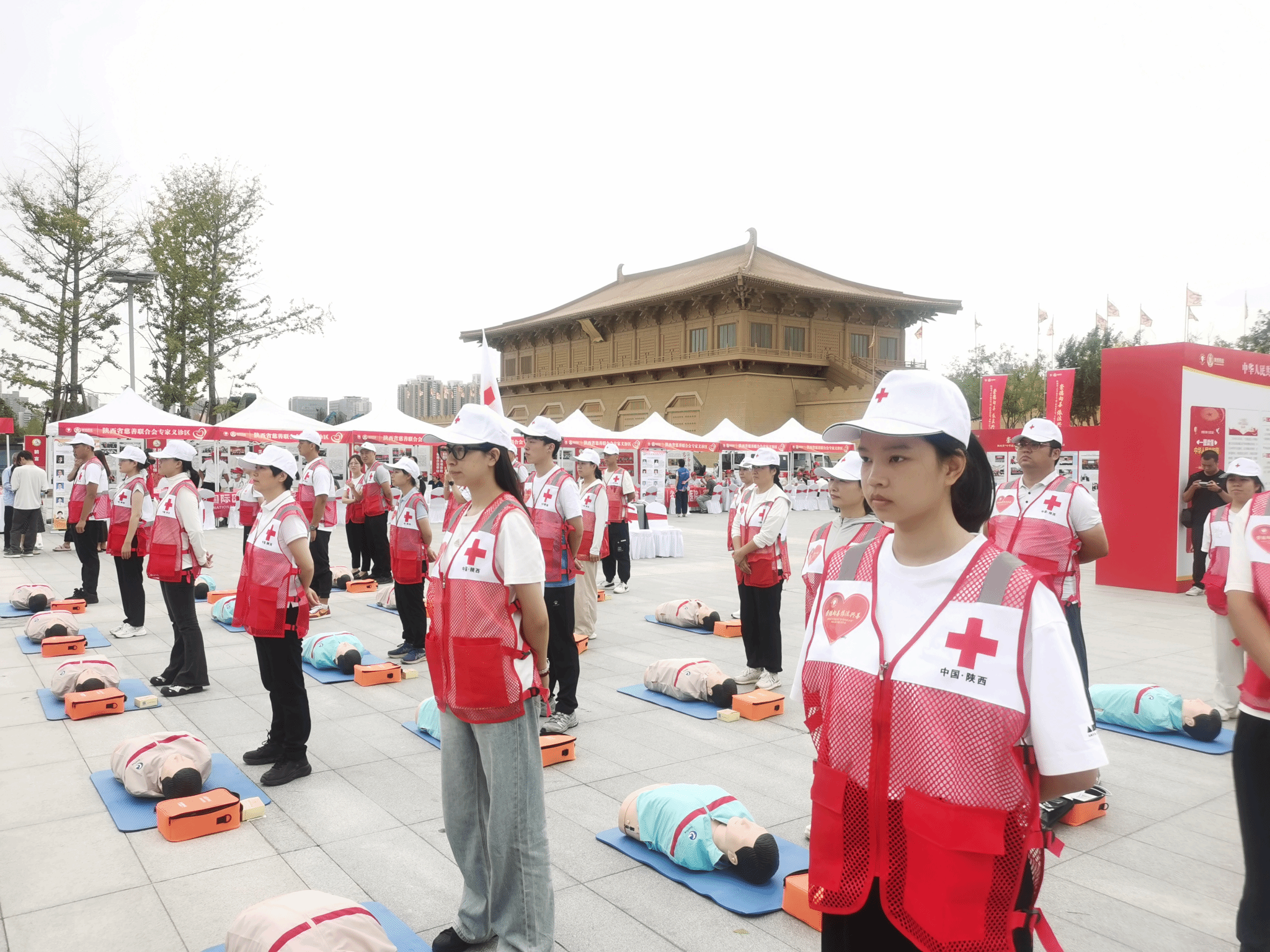 本次活动陕西省红十字会邀请了11名YABO鸭脖体育服务系的学生代表参加了心肺复苏(CPR+AED)展示和创伤救护(止血包扎固定)展示。