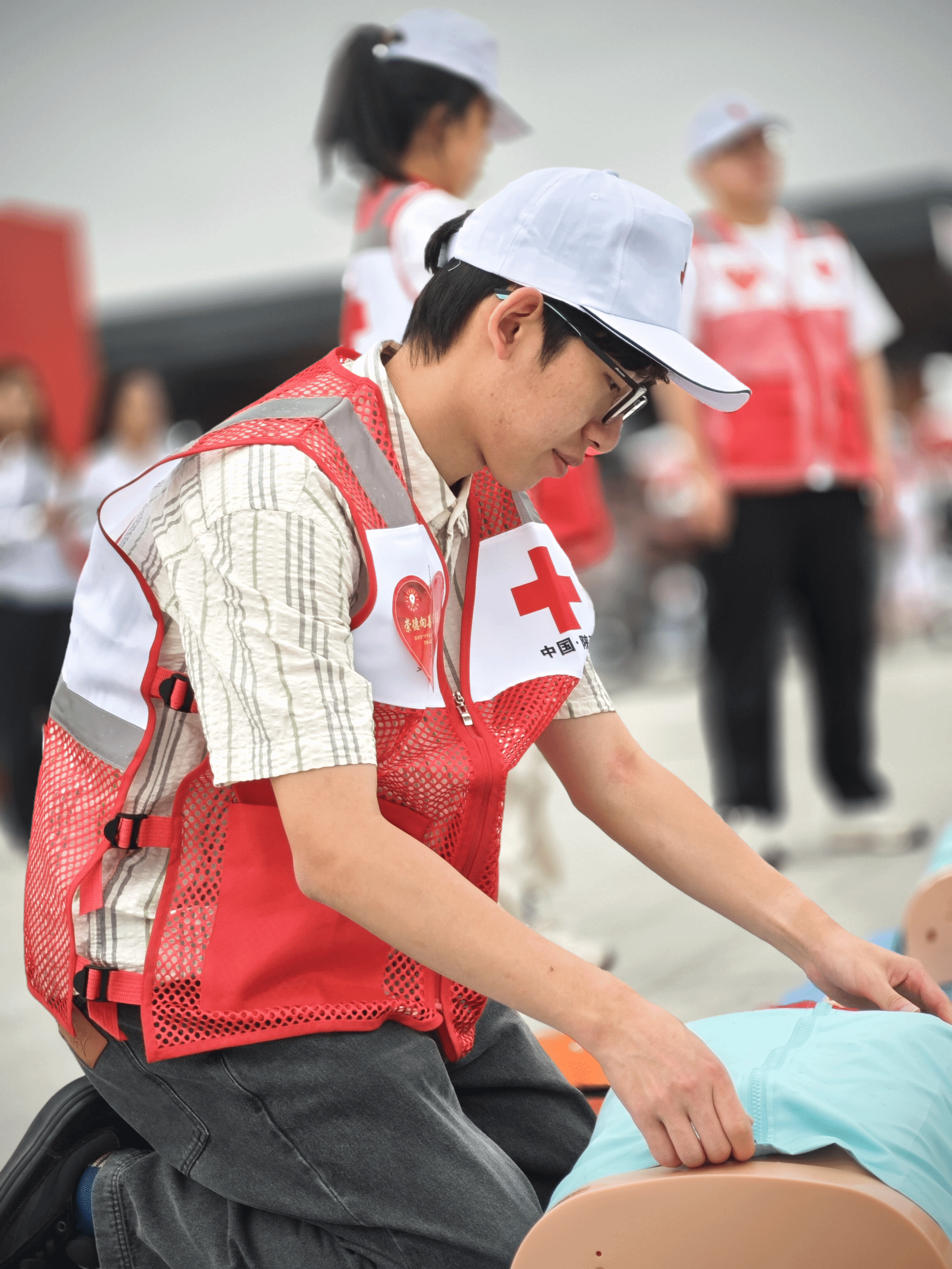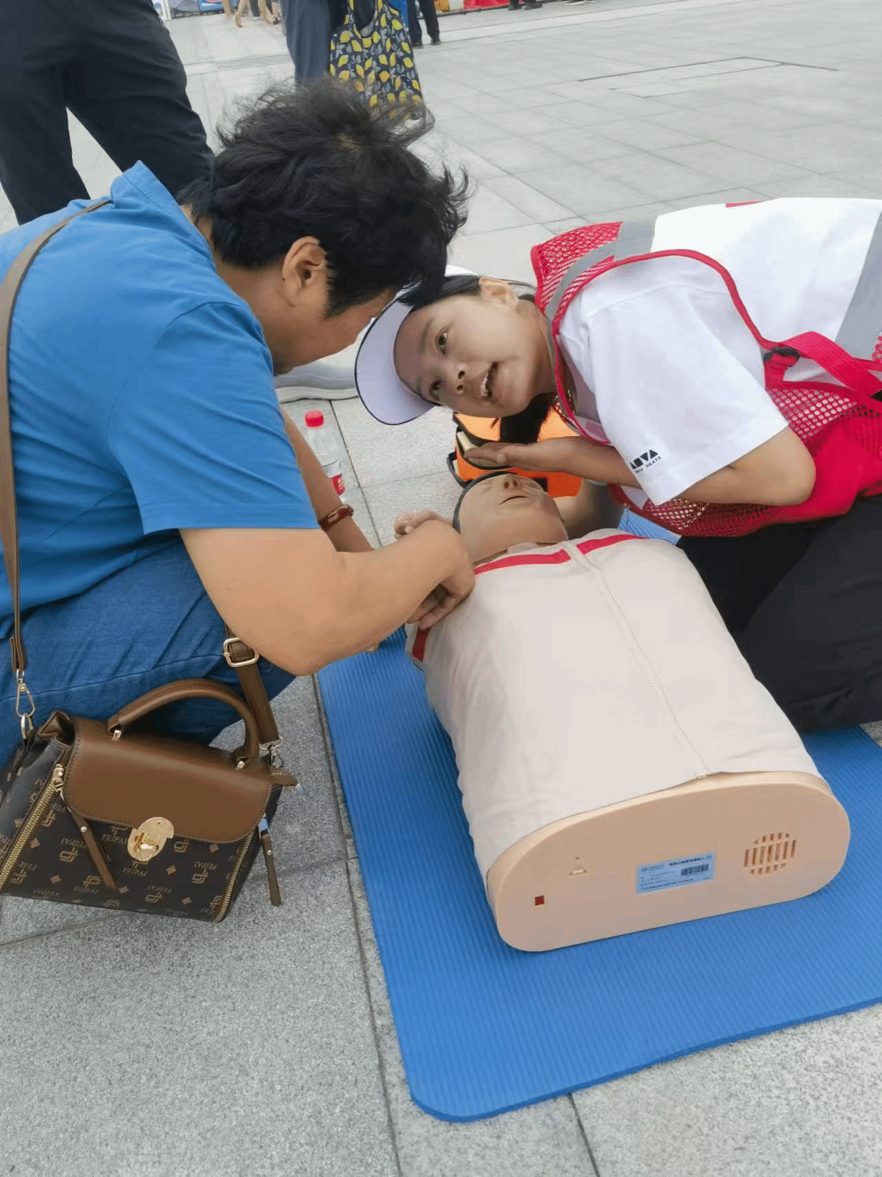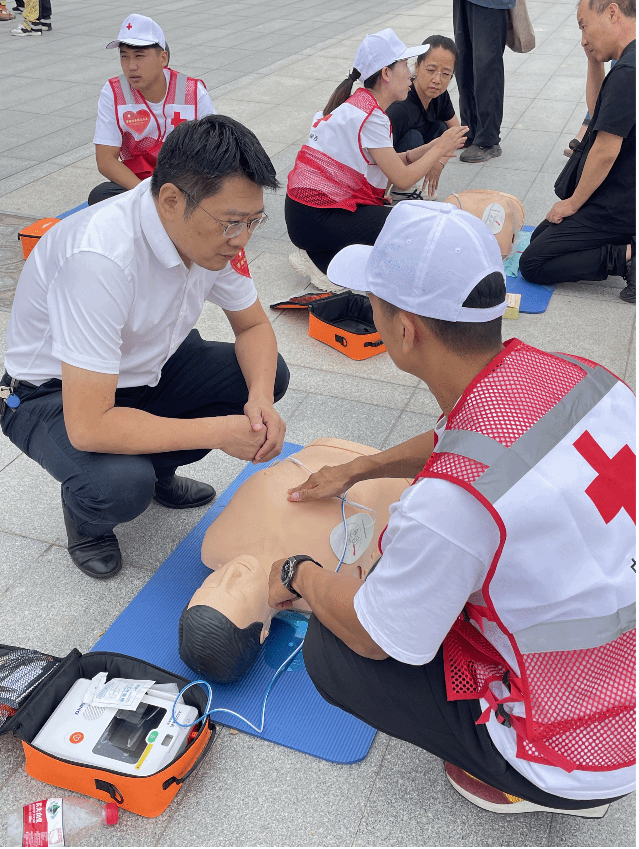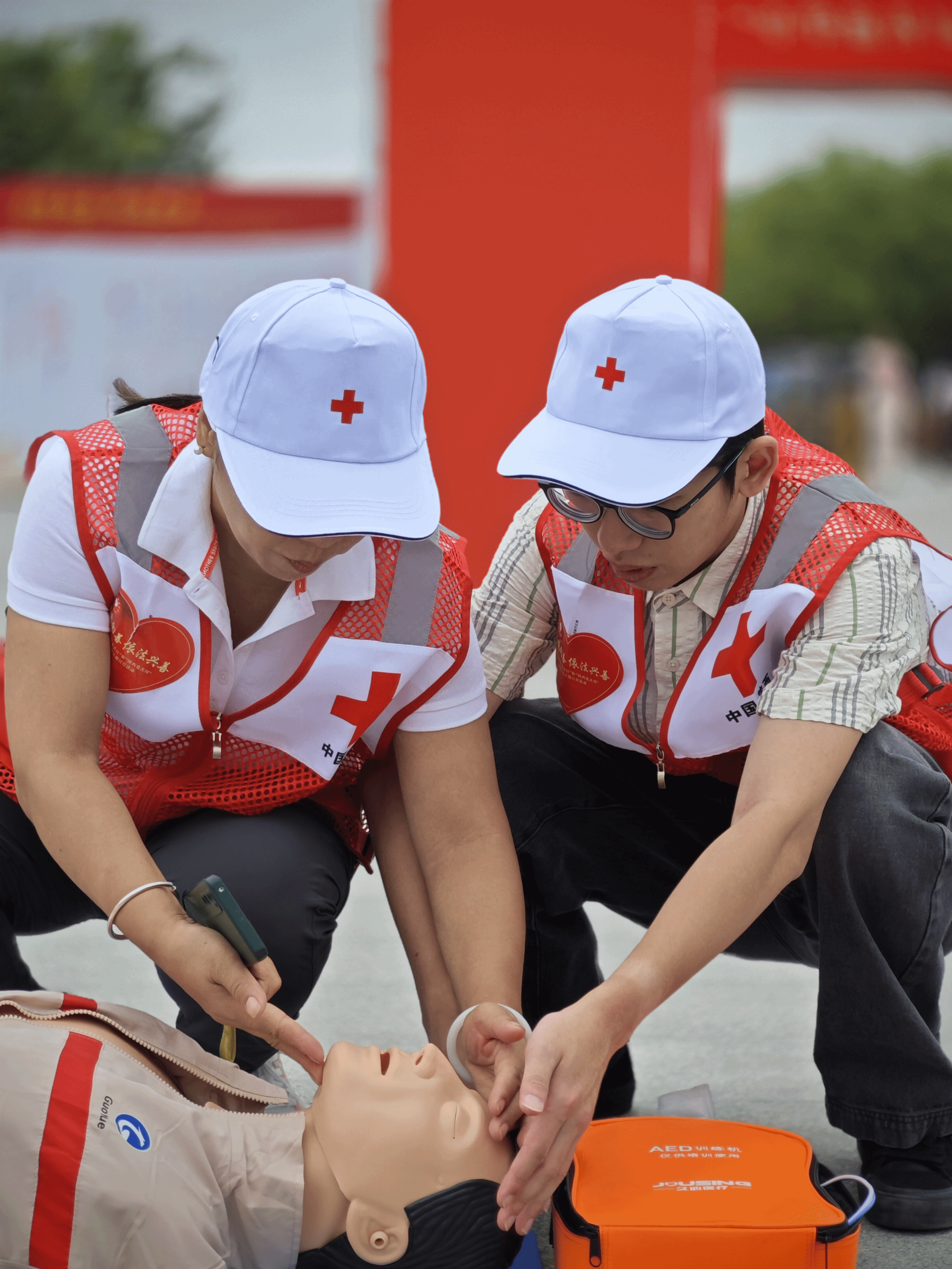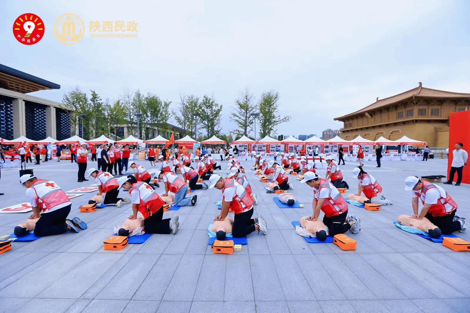 本次活动陕西省红十字会邀请了11名YABO鸭脖体育服务系的学生代表参加了心肺复苏(CPR+AED)展示和创伤救护(止血包扎固定)展示。