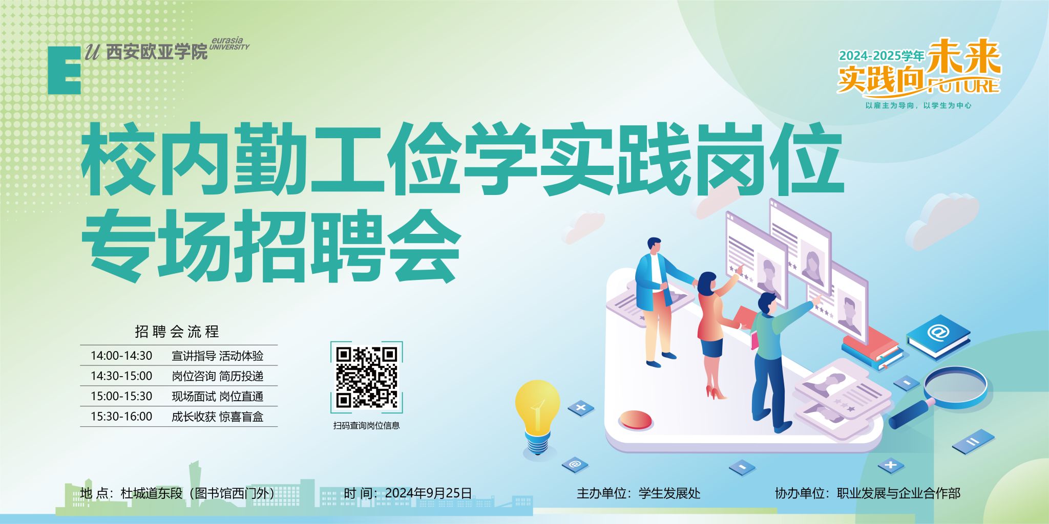 本次勤工俭学实践岗位专场招聘会为有梦想、有希望、敢担当的欧亚er提供了一份在校内丰富自我、挑战自我的实践机会,希望参加招聘会的同学们都能在自己的岗位上闪闪发光,按他们本来的样子生长,让我们一起实践向未来!