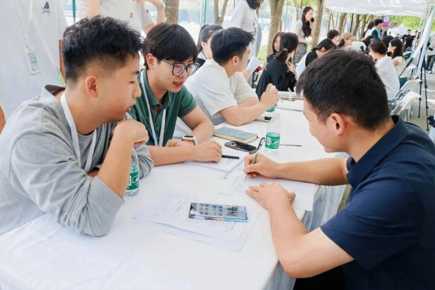 简历投递后,同学们与意向单位的老师进行深度沟通,双向选择,对于岗位匹配度高的同学,现场给予岗位直通机会,直接进入试用考核。