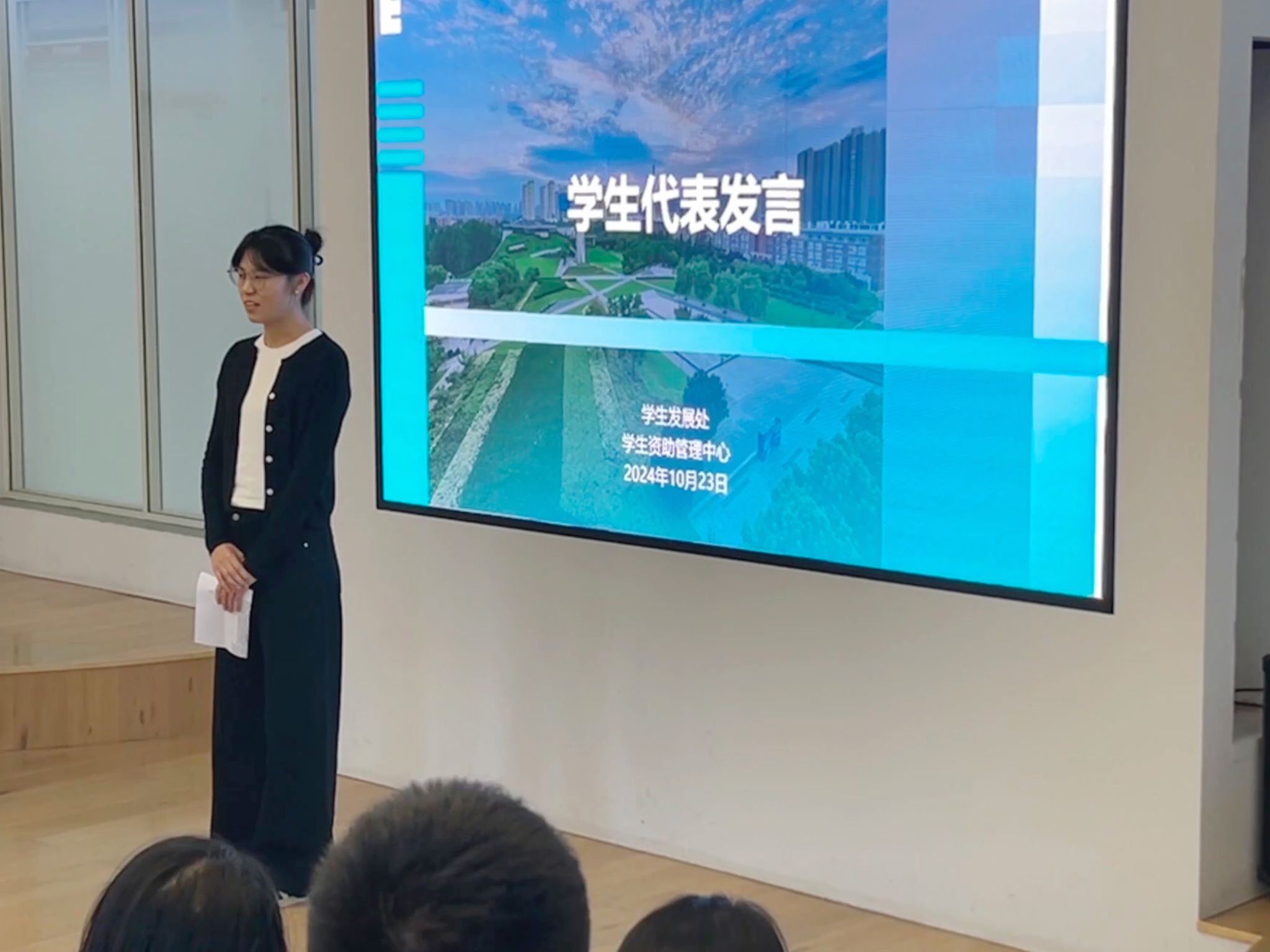颁奖环节结束后,2024年正泰·杜斌丞奖学金获奖学生代表张梦娜向大家分享了自己的学习心得、成功经验以及对未来的展望,给同学们在学习实践以及未来人生规划上带来了很大的启发。从她的话语中,我们能感受到获奖学生的风采和决心,还有她对学业的热爱,对梦想的执着追求,以及获得正泰·杜斌丞奖学金的那份自豪与感恩。