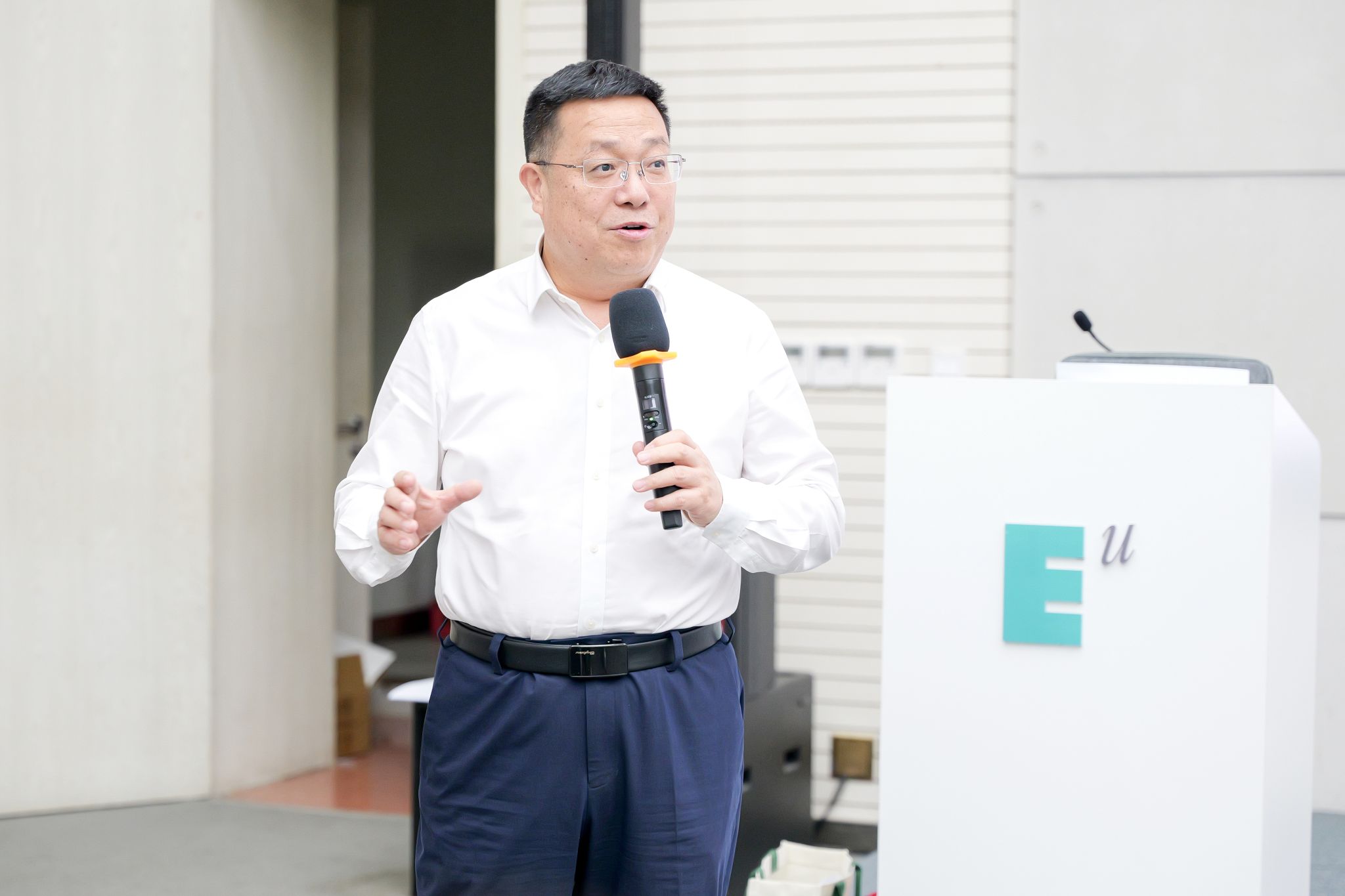 胡建波董事长倡议“以学生为中心”,学生在合影中站前排