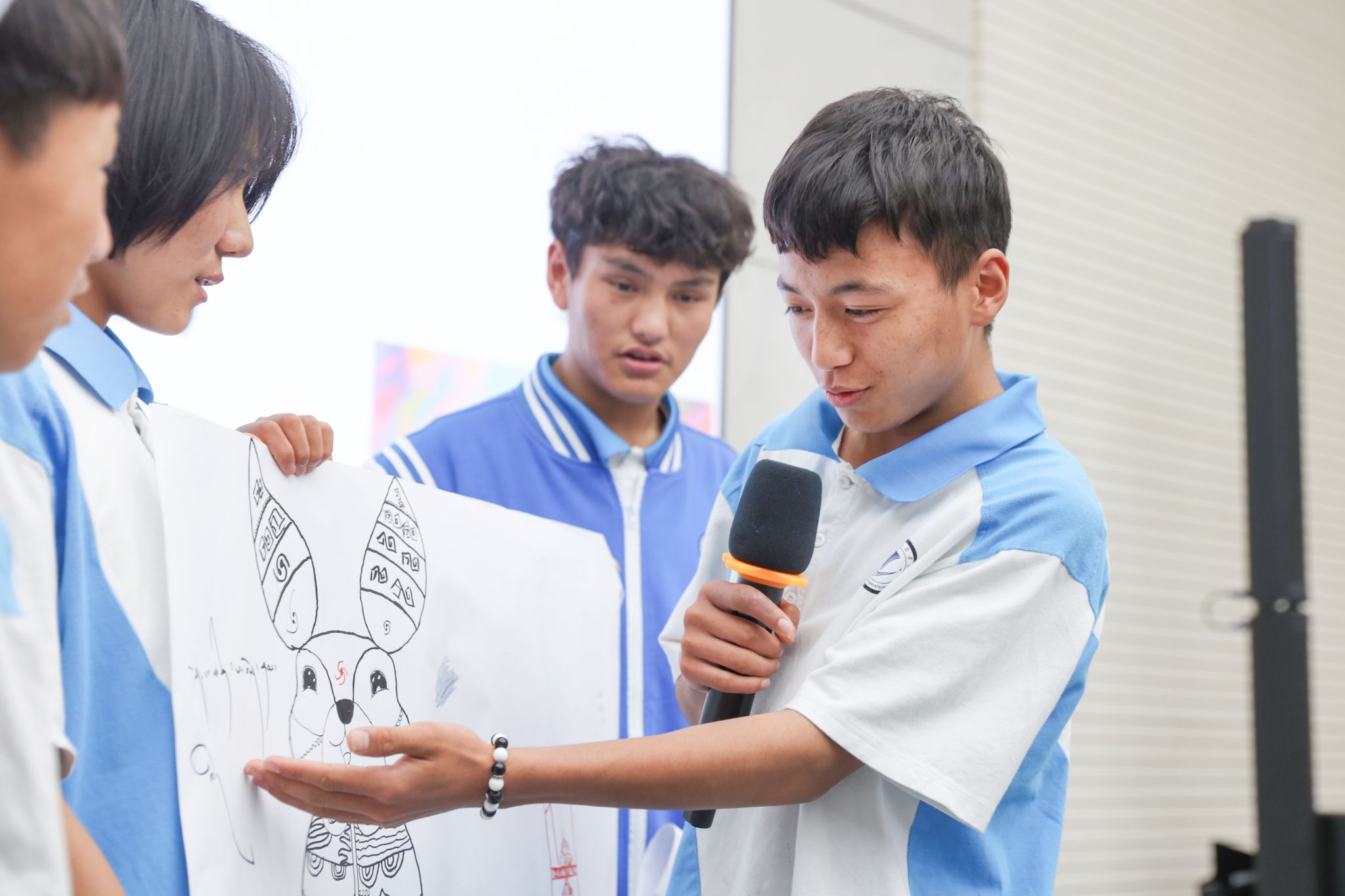 一组学生以高原牧区生活中最熟悉的帐篷为灵感,以传统回纹图案为设计核心,延续了藏族手工艺中象征吉祥永恒的纹样特点。学生团队在分享环节中用质朴的语言说:“帐篷是我们放牛结束后要回到的家。”他们用多元的纹饰交织出家的温度,让汉藏文化的纹路在帐篷布上变成一家人。