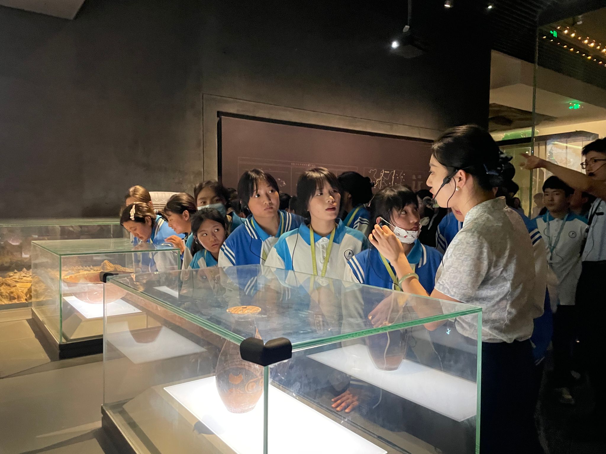 陕西历史博物馆(本馆)作为中国首座大型现代化国家级博物馆,承载中华文明千年文脉,是展示民族历史瑰宝的重要窗口。在西安站活动总负责人黄廷君老师的积极商请下,陕西历史博物馆给予本次研学活动大力支持,邀请藏族学子跟随着专业的博物馆讲解团队,在古代文明展厅沉浸感受传统文明精粹、先民智慧,不仅了解了文物背后的历史脉络与多民族文化、技术发展的细节,更直观感知“中华民族共同体”的深厚根基,使文化认同在古今对话中薪火相传。