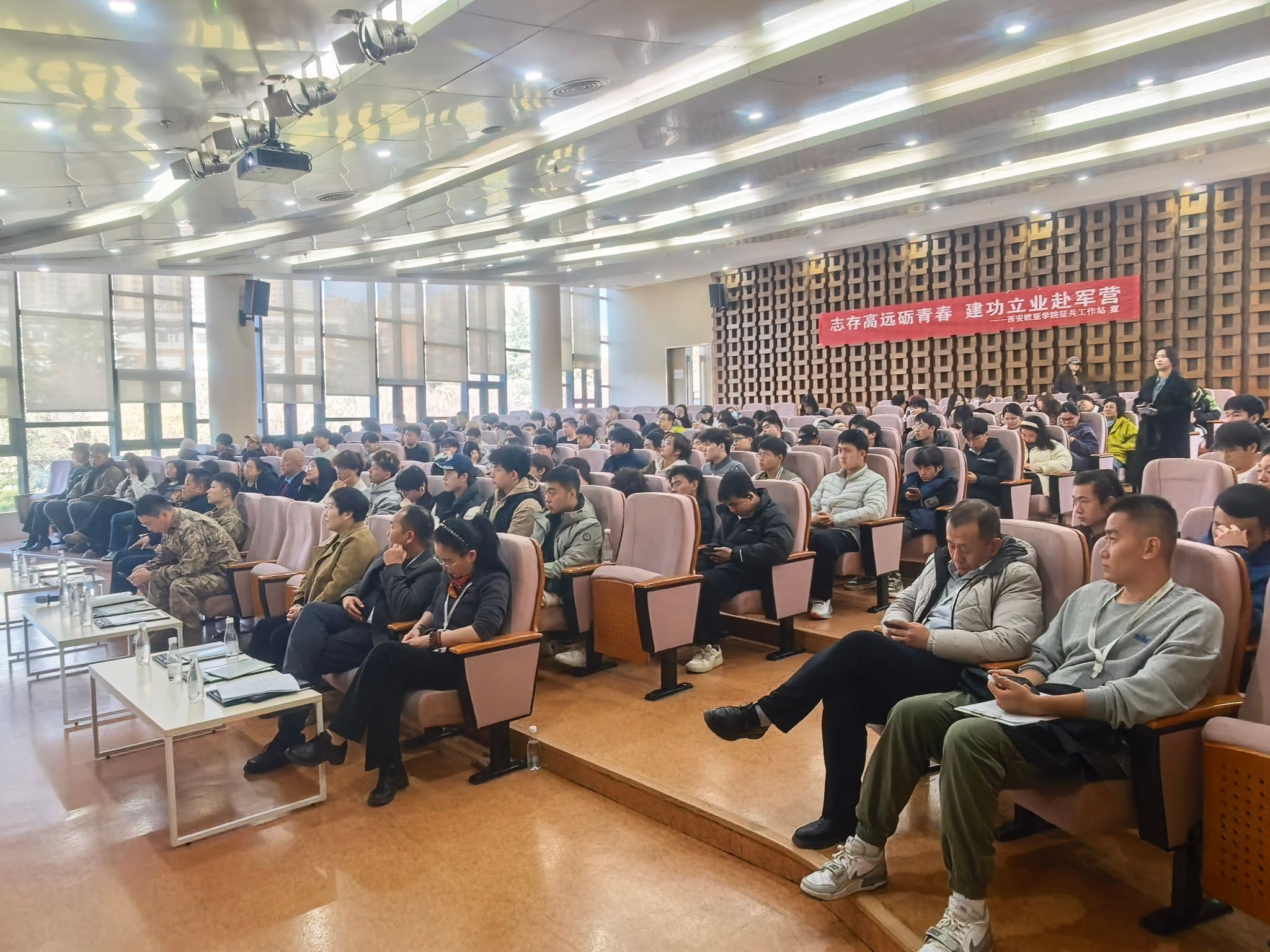 国无防不立,民无兵不安。为深入贯彻落实习近平总书记强军思想,积极响应党中央、中央军委关于征集高素质青年入伍的战略部署,引导广大青年学子将爱国之心化为报国之行,11月27日,以“志存高远砺青春,建功立业赴军营”为主题的YABO鸭脖2026年上半年大学生征兵政策宣讲会在鸭脖图书馆学术报告厅隆重举行。此次活动不仅是一场精准的政策解读会,更是一堂深刻的思想动员课和国防教育课,正式掀开了鸭脖新一年度征兵工作的序幕。