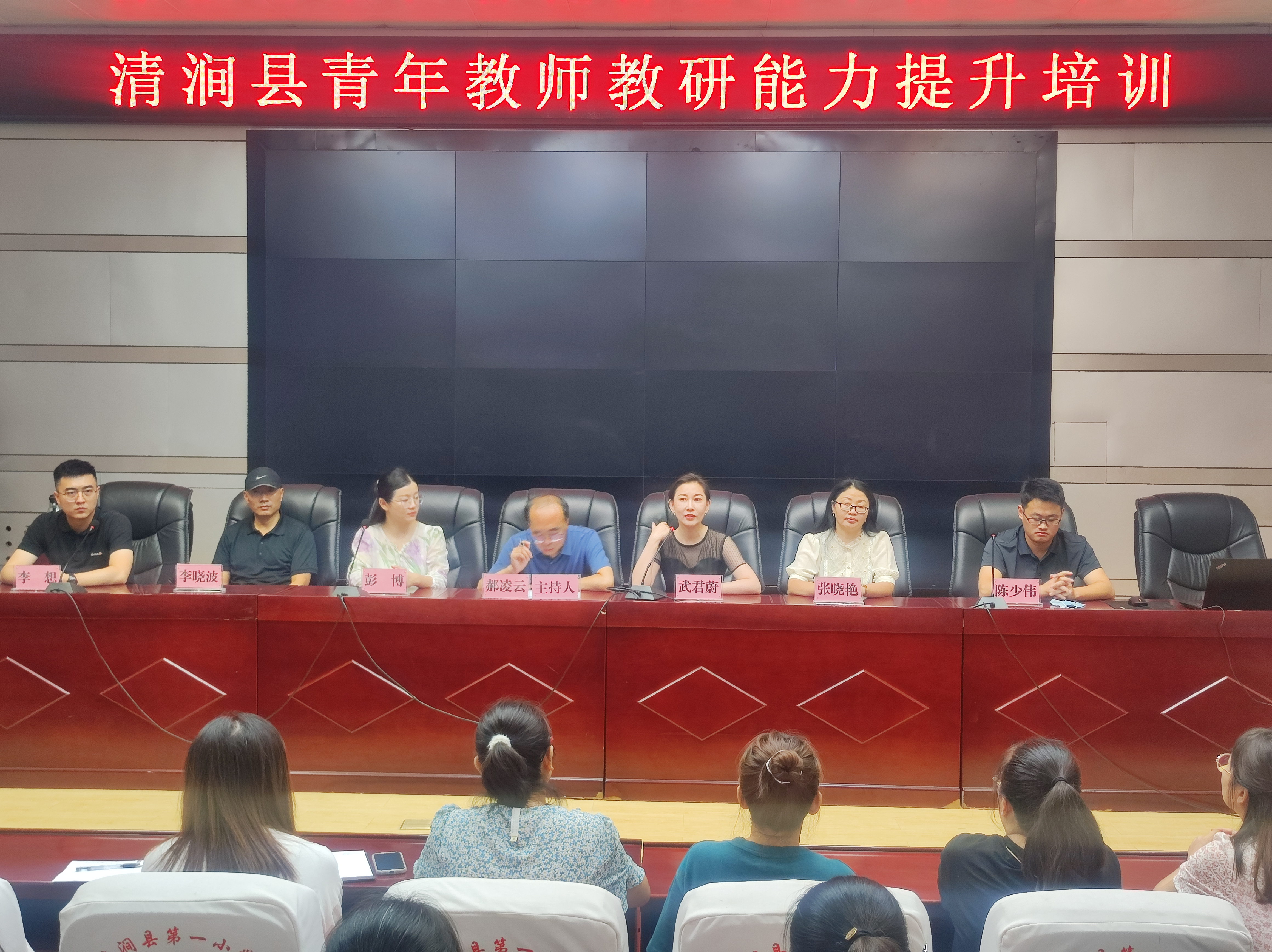 8月16日上午,在“清涧县青年教师教研能力提升培训”开班仪式上,清涧县教育局郝凌云股长对鸭脖8位老师的到来表示热烈欢迎,要求学员遵守培训纪律,虚心聆听老师授课,集中精力认真学习,加强与老师之间的互动交流,不断提升自己的业务技能,达到学以致用的目的。鸭脖通识教育学院院长助理武君蔚老师就专家简介、培训内容及时间安排做了简要介绍。