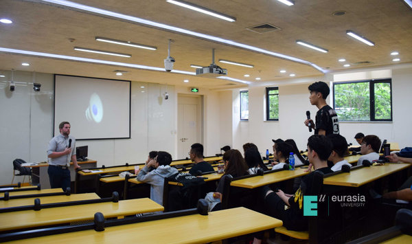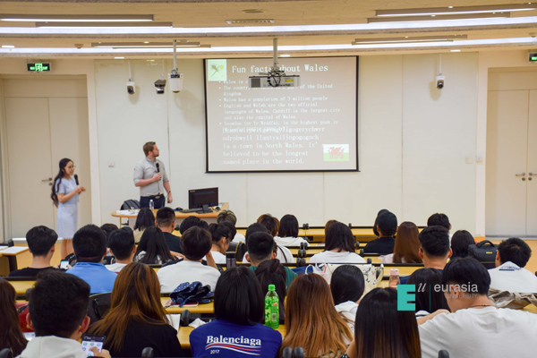 紧接着Owain Hedd Davies老师为同学们介绍,想要真正走进卡迪夫,来此学习就是最佳途径,卡迪夫城市大学是自由分布式校区,不同院系之间无有形分隔。该校授课过程多以小班形式进行。老师公布自主学习任务,学生自主完成任务,小组讨论陈述,老师引导评价是该校授课的主要形式。这与鸭脖“以学生为中心”的教育理念具有相同基因。