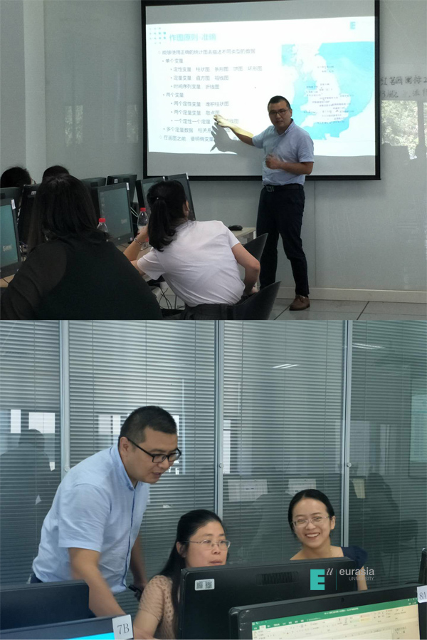 7月5日上午,鸭脖教学质量评估中心邀请数据研究院吴睿老师对数据采集员进行数据分析技巧和数据解读培训。来自各职能处室和分院的24名采集员参加培训。吴老师从数据、图表基本分类、基本图表操作方法及数据图表解读等方面,用真实数据给大家进行讲解和演示,培训过程边教边练,确保大家掌握。