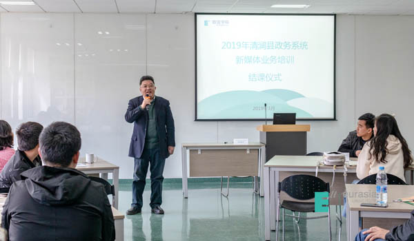 最后,中共文化传媒学院党总支书记、合作发展中心主任左伟对此次政务系统新媒体业务培训进行了总结,他表示今后继续利用分院的专业优势帮助清涧县做好新媒体方面的宣传工作,近期双方将加大无人机产学研基地推进工作,发挥新媒体在清涧县脱贫攻坚工作中宣传引导作用。