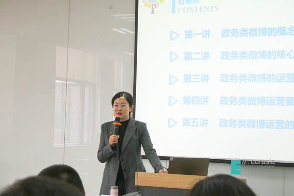 3月28日上午9:00,陕西省教育新媒体研究院研究员汪子玮老师从政务类微博的概念与相关理论、政务类微博的核心与运营目的、政务类微博的运营方法与要素、政务类微博运营要点与问题以及政务类微博运营的误区这五个方面展开讲解,并依次进行分析。