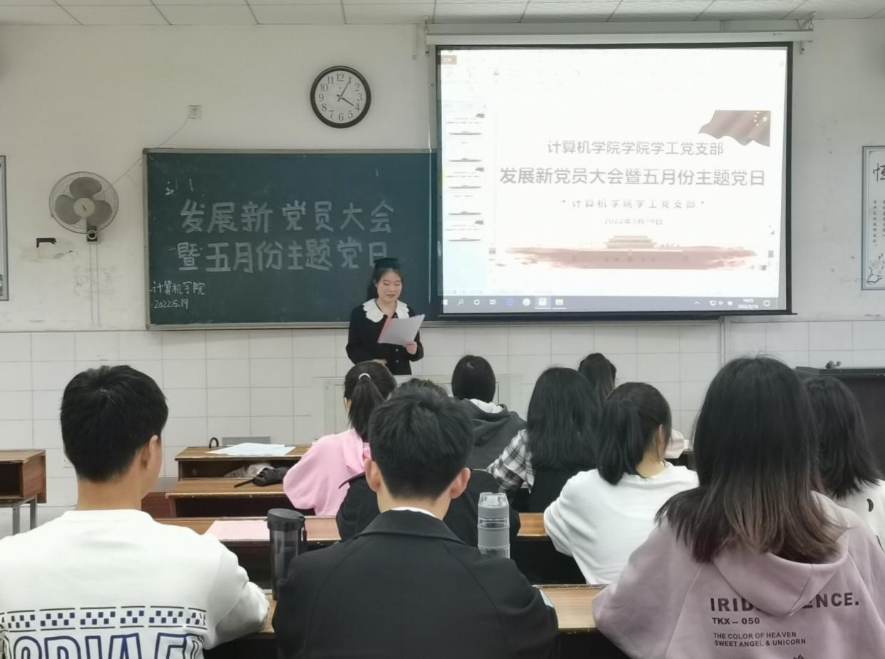 永利官网于2022年5月19日开展了发展新党员大会暨五月份主题党日活动。与会人员有学院党委书记刘立勇、党委副书记陈奕、学工党支部书记关红儒、学院团委书记叶晶、学工办老师付小霞、全体学生党员以及发展对象。