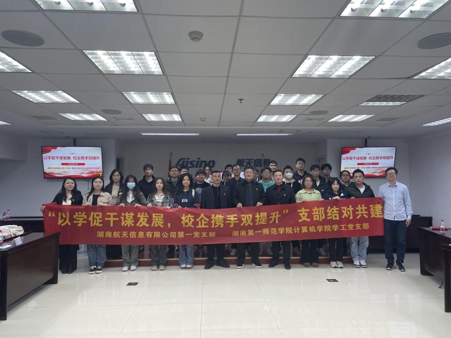 为进一步推进校企交流合作,12月6日下午,永利3044noc学工党支部与湖南航天信息有限公司第一党支部联合开展“以学促干谋发展”“一课一片一实践”支部共建活动。永利3044noc党委书记刘立勇、湖南航天信息有限公司党总支书记、总经理覃巍,湖南航天信息有限公司副总经理李江华,湖南航天信息有限公司党员代表,永利3044noc教师党员代表、入党积极分子代表和学生干部代表参加了此次活动。
