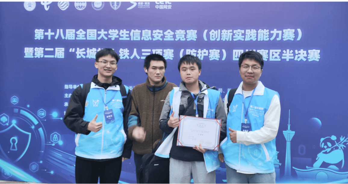 3月16日,第十八届全国大学生信息安全竞赛(创新实践能力赛)暨第二届"长城杯"铁人三项赛(防护赛)半决赛在广东、天津、浙江、四川、陕西五大赛区同步举行。本次大赛由中央网络安全和信息化委员会办公室、教育部、国家市场监督管理总局、国家数据局指导,中国信息安全测评中心主办,其中四川赛区赛事由成都信息工程大学双流新型产业学院承办。永利官网网络安全团队首次在该赛事国家级网络攻防赛道实现突破,斩获半决赛三等奖。