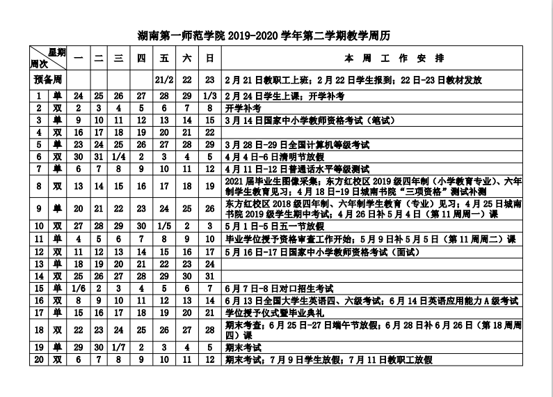 附件:3044am永利官网2019-2020学年第二学期教学周历