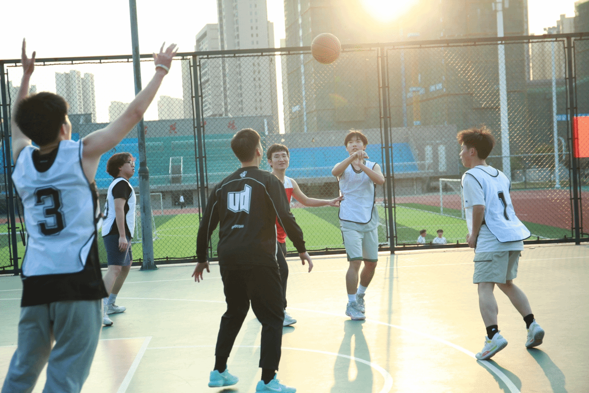 随着陈奕宣布活动月正式启动,全体人员齐声高呼“代码跃动青春,文体赋能未来”的激昂口号。随后进行的首场教职工队与24级网络安全专业联队的师生篮球对抗赛将气氛推向高潮。双方队伍在40分钟的赛程中展现出精湛球技,教职工队凭借默契的战术配合稳扎稳打,学生队伍则以灵活的身手上演精彩突破,最终教职工队以三分优势险胜。赛场上此起彼伏的喝彩声生动诠释了“友谊第一,比赛第二”的体育精神。