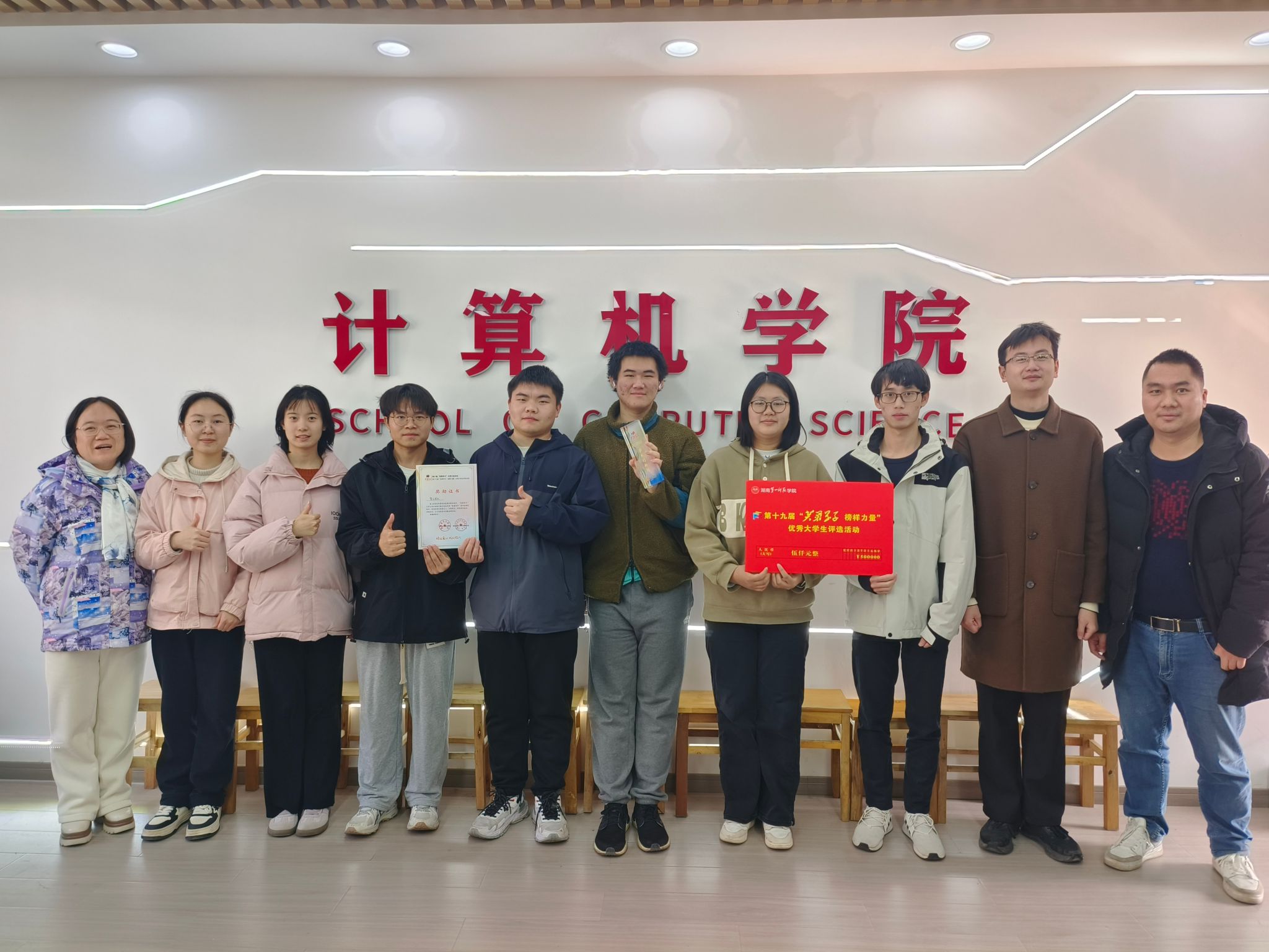 永利官网智汇团队凭借在专业竞赛中的突出表现,荣获校第十九届“芙蓉学子·榜样力量”学术创新奖。该奖项充分肯定了团队成员在学术创新与实践探索中的卓越成绩。智汇团队由跨年级的8名成员组成,包括21级计科3班张任也,22级计科4班覃苏苏、夏月、熊涛、曾雨、梁欣如,22级计科5班蔡宇,以及23级计科1班刘坤浩。团队在唐德燕、周聪两位教师的专业指导下,通过持续协作与创新突破,在学科竞赛领域取得了显著成效。