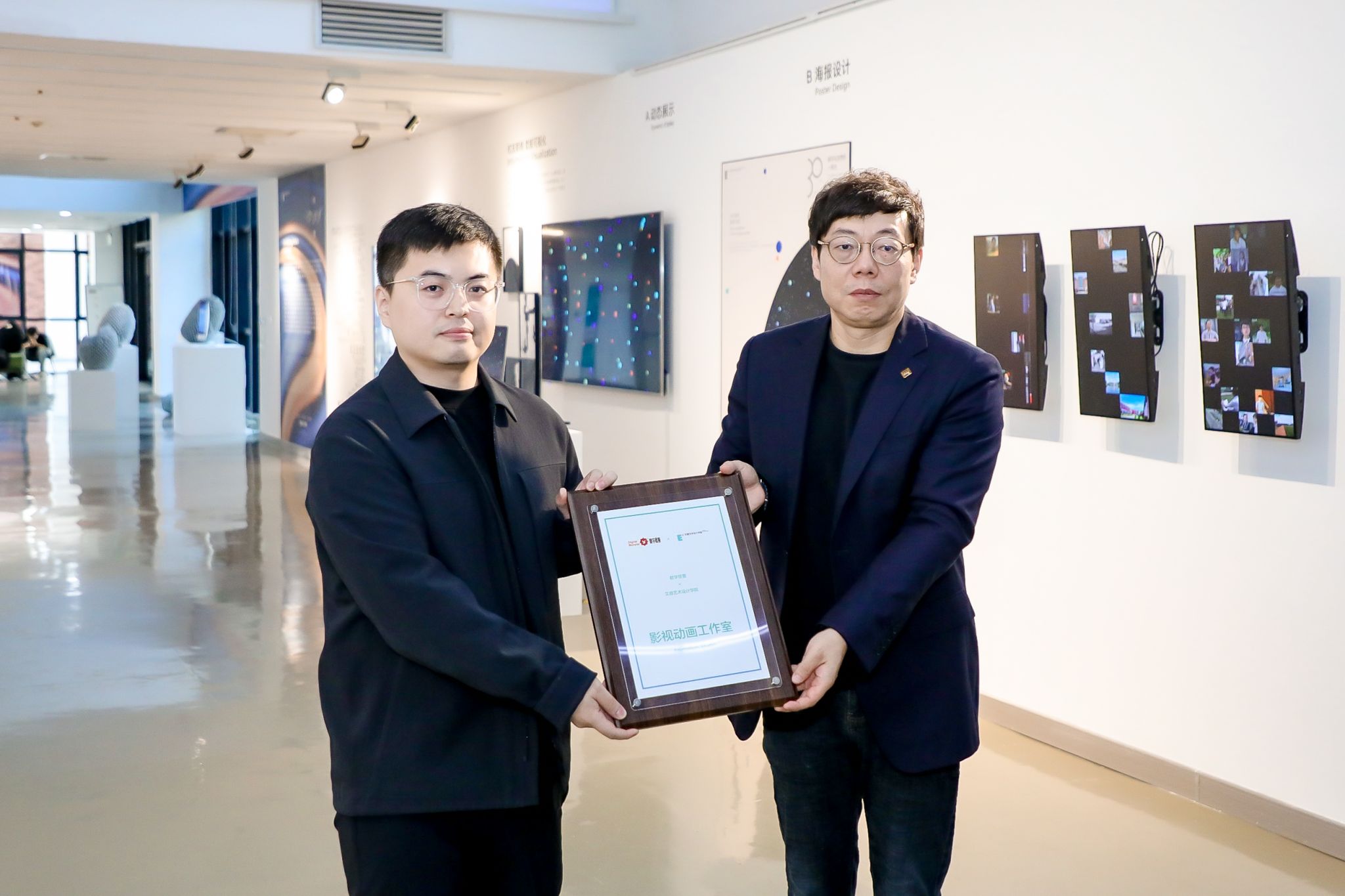 YABO鸭脖李正副校长与石超群经理为“影视动画工作室”共同授牌