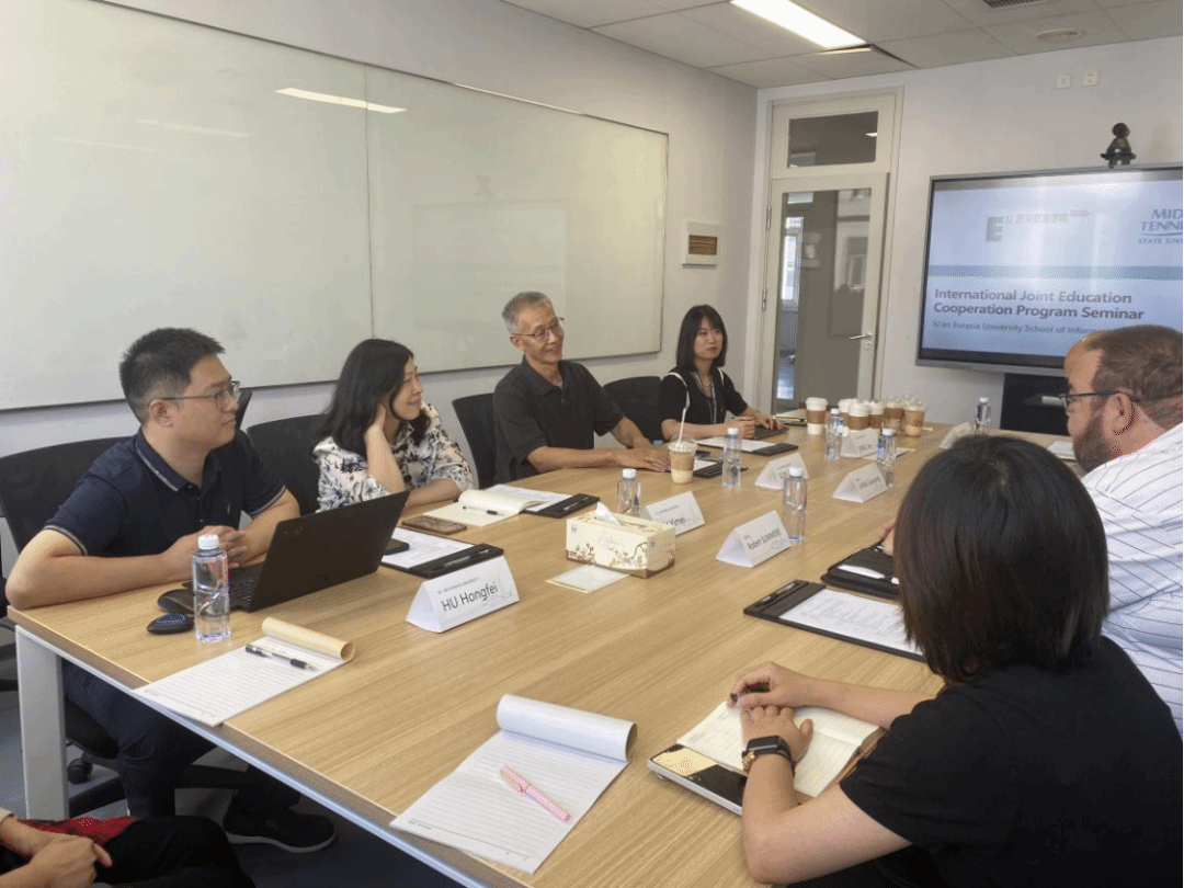 7月4日下午,西安欧亚信息工程学院与美国中田纳西州立大学合作的中外合作办学项目专业课程研讨会在信工学院4楼顺利举行。出席本次活动的嘉宾包括:YABO鸭脖副校长孙建荣教授,美国中田纳西州立大学副校长Robert Summers,亚洲学习中心主任Guanping Zheng,国际合作与交流中心主任丁洁老师,以及中美合作办学项目组徐以美老师和胡红飞老师。