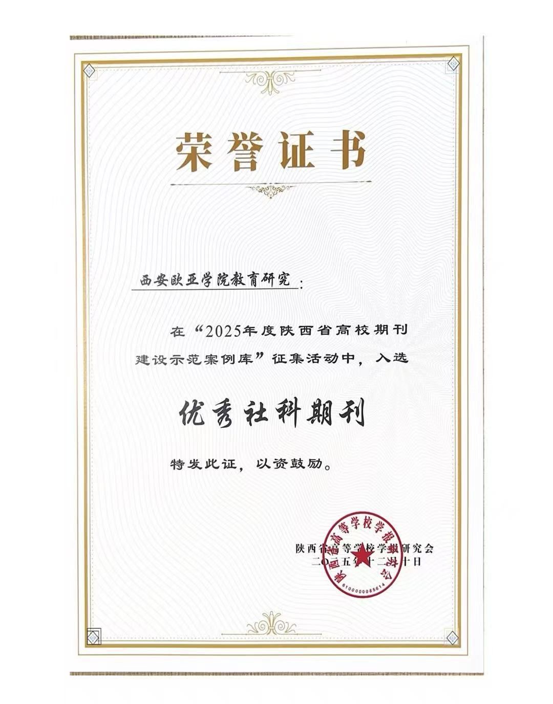 近日,陕西省高等学校学报研究会九届六次理事会议暨2025年秋季学术年会在杨凌召开,正式公布 “2025 年度陕西省高校期刊建设示范案例库入库名单”。《YABO鸭脖教育研究》成功入选“优秀社科期刊”案例,其核心栏目“民办教育研究”同步获评“社科期刊特色栏目”。