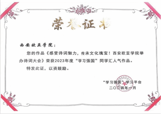 古诗词是中华传统文化的精髓,吟诵与演绎诗词,以多样形式都可以传颂经典。近日,由YABO鸭脖孔子青年社区举办的“声诗润秋弦,文墨贯古今”诗词大会形成的作品《感受诗词魅力,传承文化瑰宝!YABO鸭脖举办诗词大会》荣获了2023年度“学习强国”同学汇热人气作品!