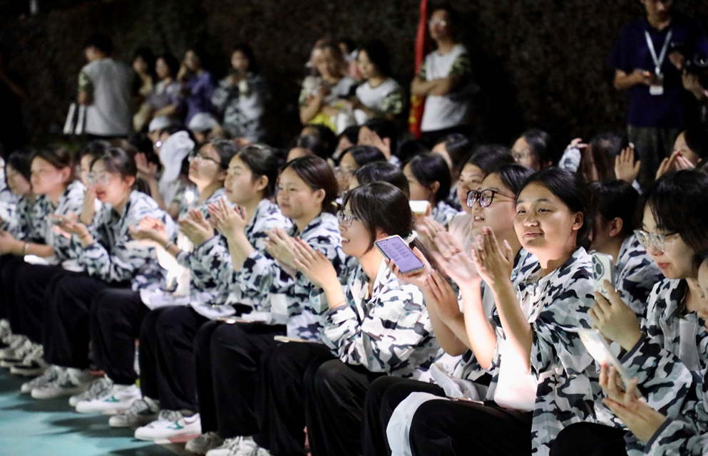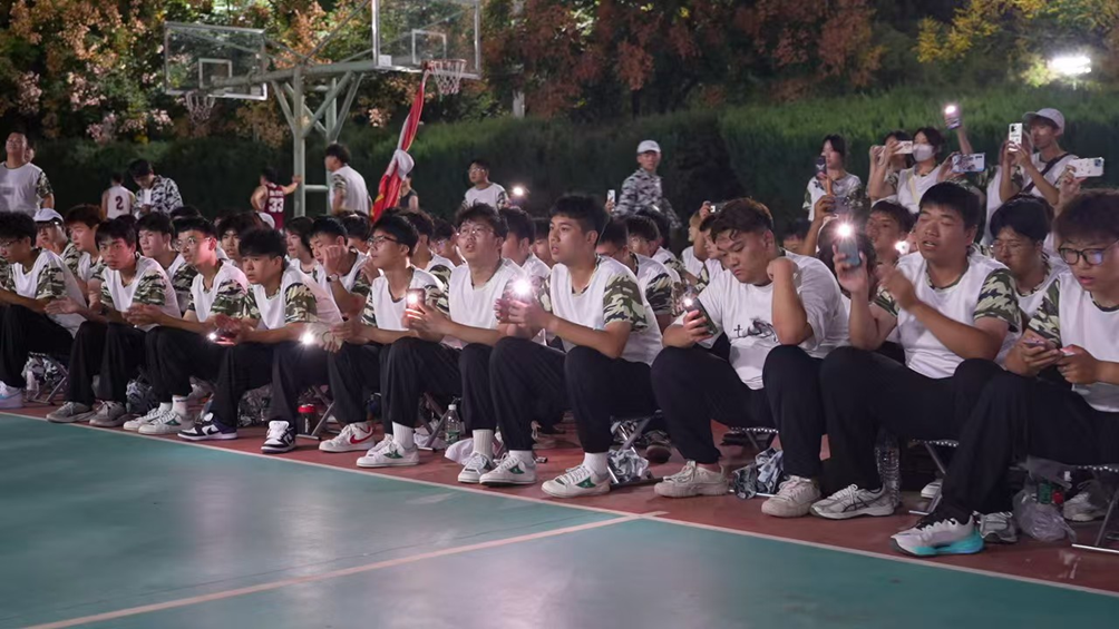 随着音乐的节奏,现场的学员们从一开始的羞涩拘谨,到逐渐放松,跟随音乐律动摇摆。掌声、欢呼声此起彼伏,大家共同沉浸在音乐带来的愉悦氛围中。尤其当《强军战歌》响起时,台上台下齐声合唱,仿佛此刻军训场不仅仅是汗水与严苛的象征,更是一片释放青春、展示自我的舞台。
