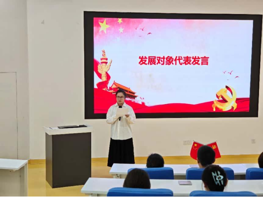 学员代表杨欣雨发言,她表示,作为发展对象,要以更加坚定的信念和对党的热情,持续加强政治理论学习,筑牢信仰之基,补足精神之钙,以党员标准严格要求自己,以实际行动来体现入党的决心。
