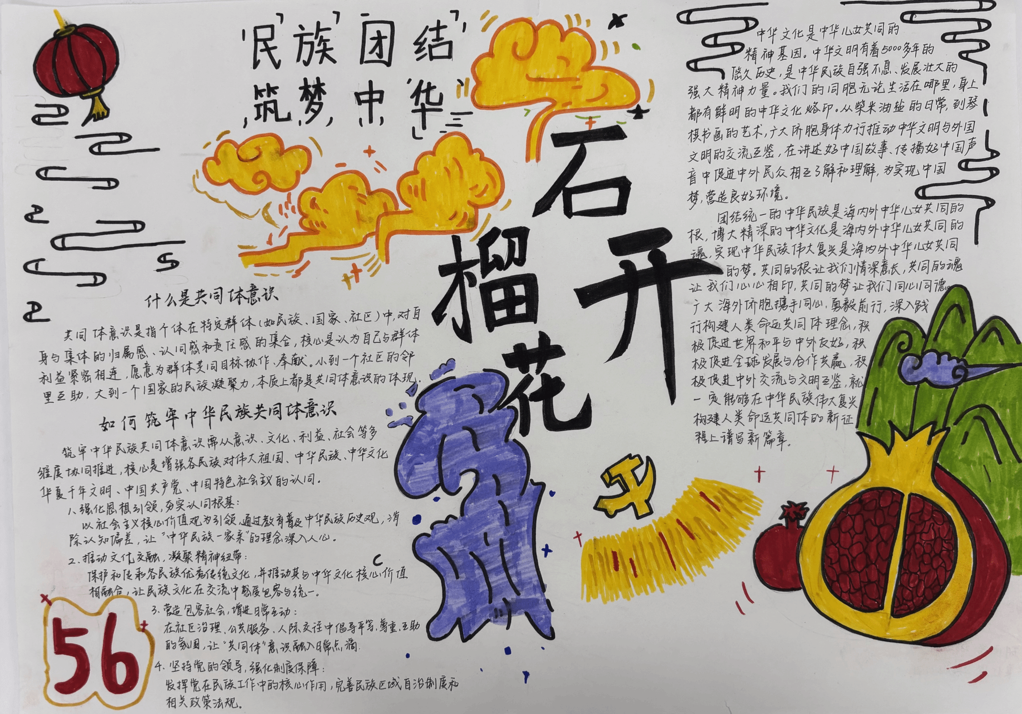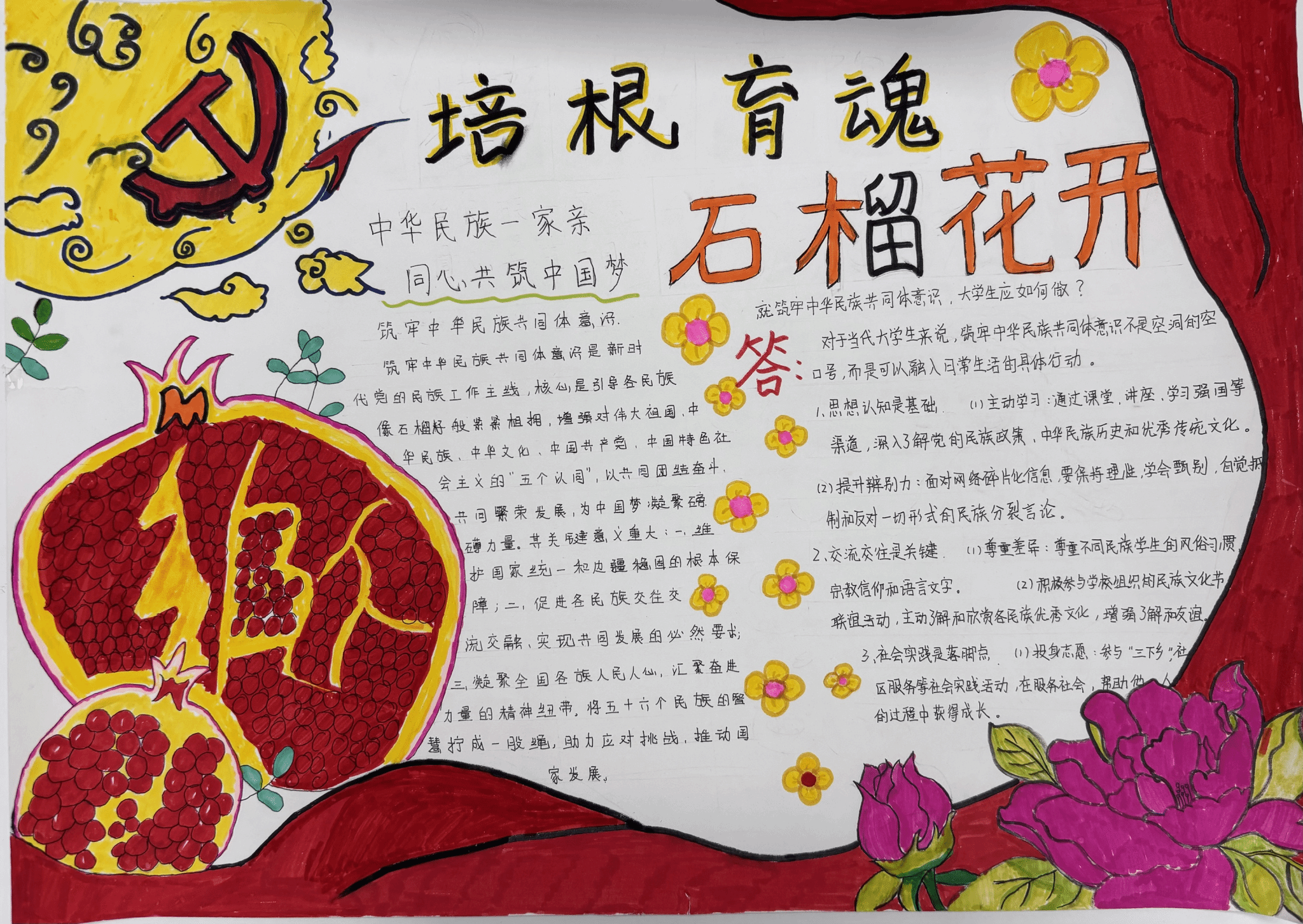 为深入贯彻落实学校关于民族团结进步教育的工作要求,深化爱国主义和民族团结教育,近日,YABO鸭脖第二青年社区分党委成功举办了民族团结月主题手抄报征集活动。本次活动以生动活泼的艺术形式,在学生中营造了“培根育魂 石榴花开”的浓厚氛围,取得了良好的育人效果。
